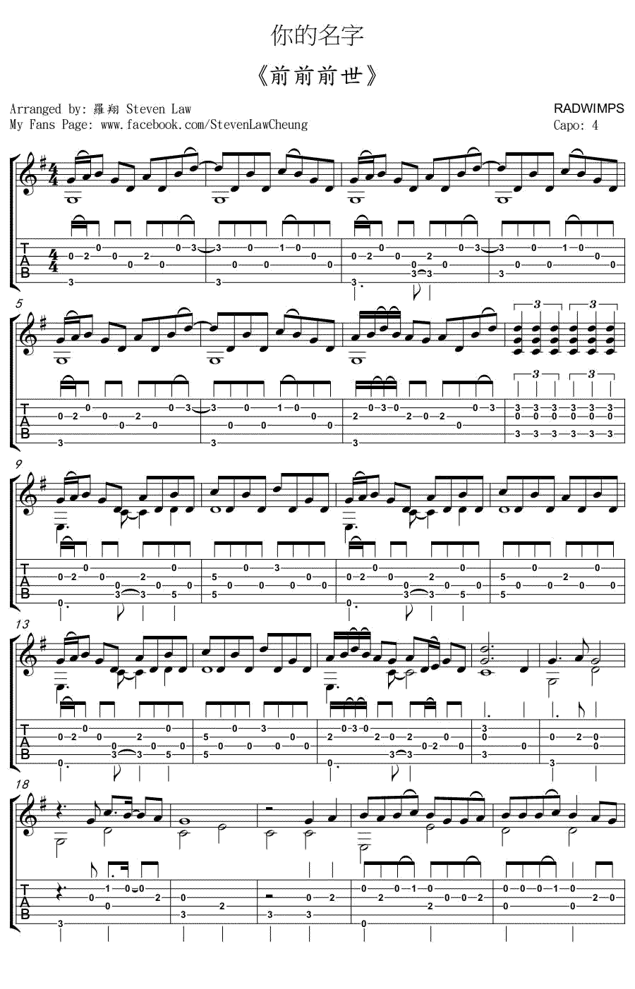 - 流行的云吉他谱 岸部真明 指弹独奏谱 吉他图片谱