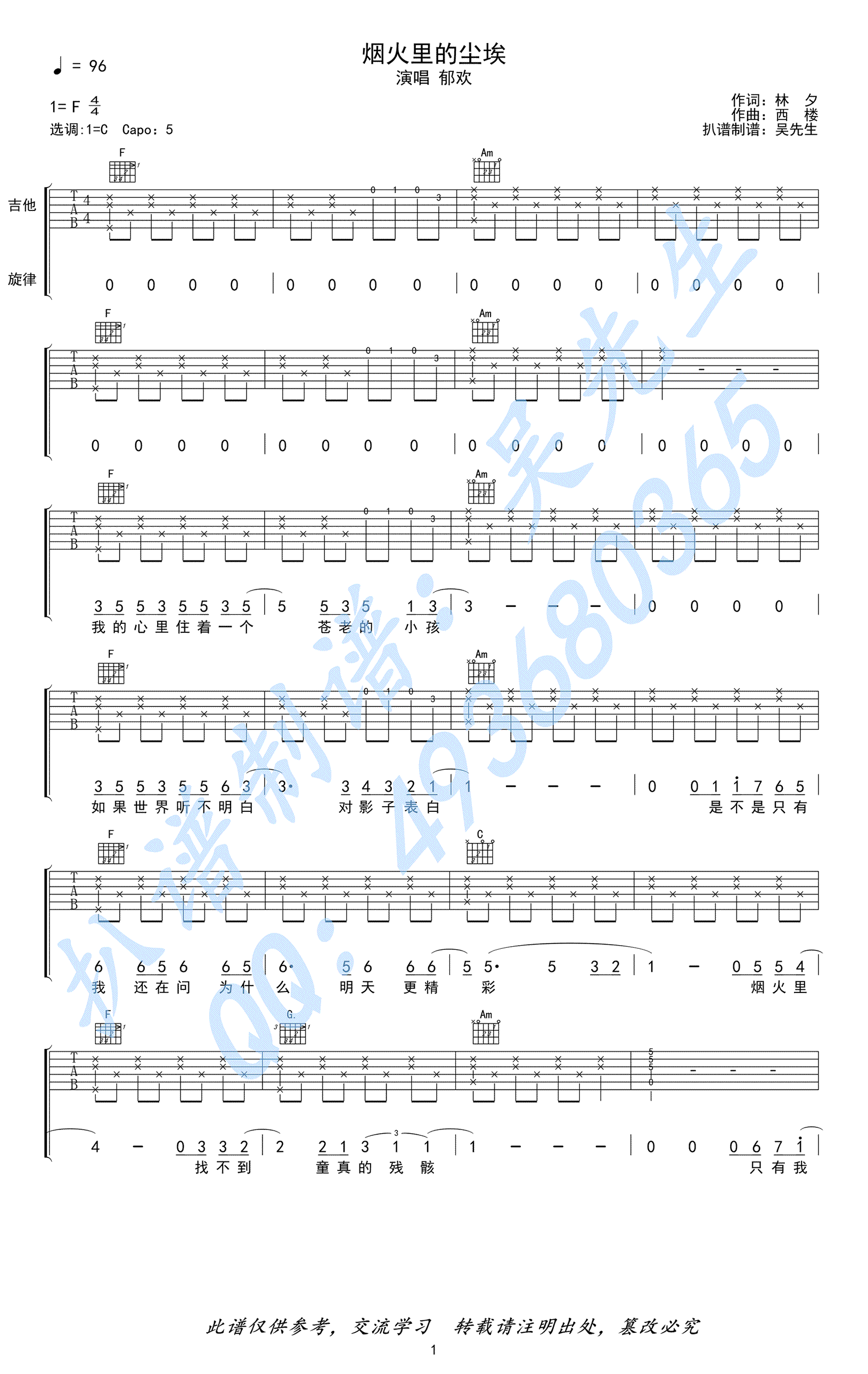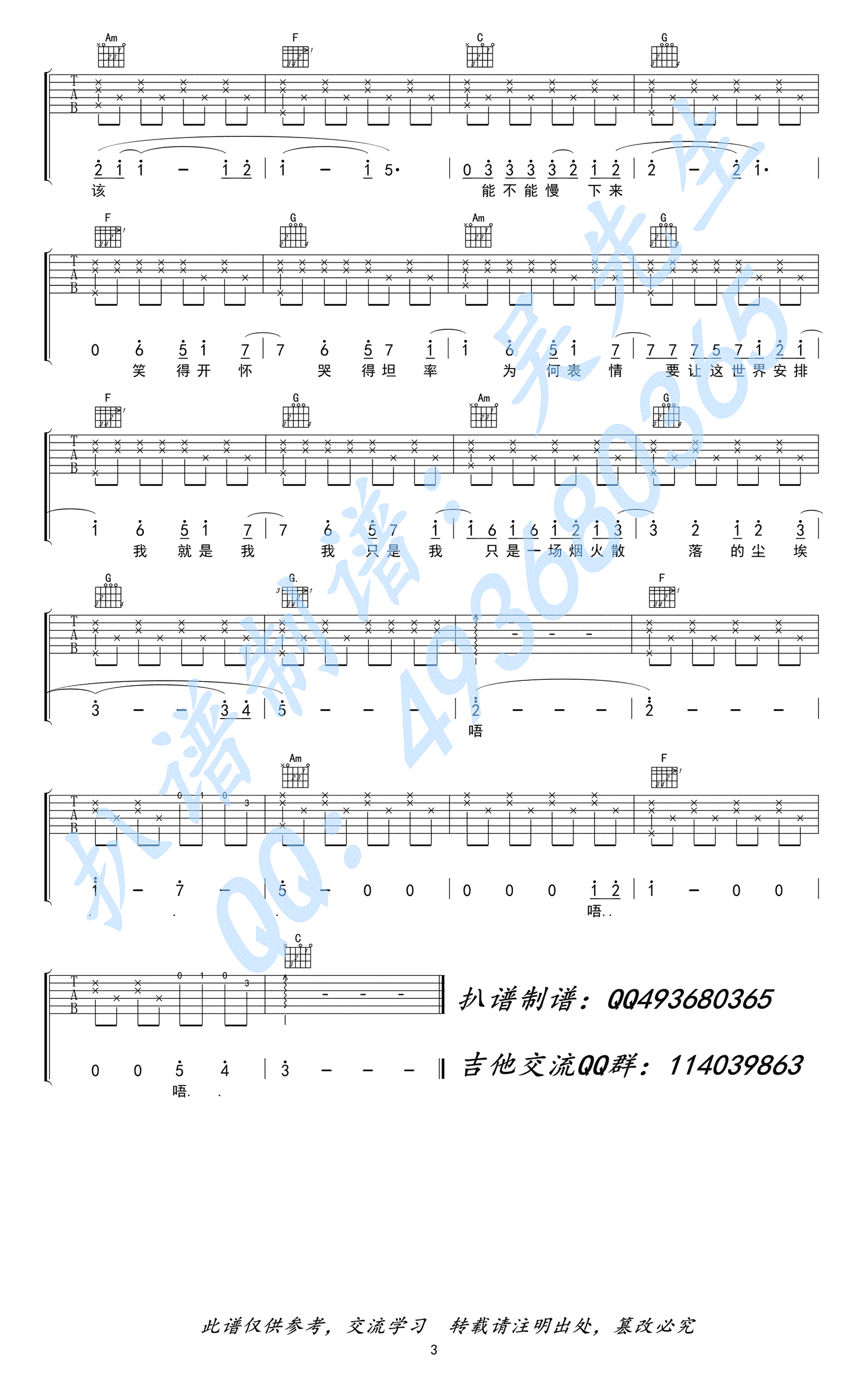 - 烟火里的尘埃ukulele谱 华晨宇 尤克里里谱 男生+女生版
