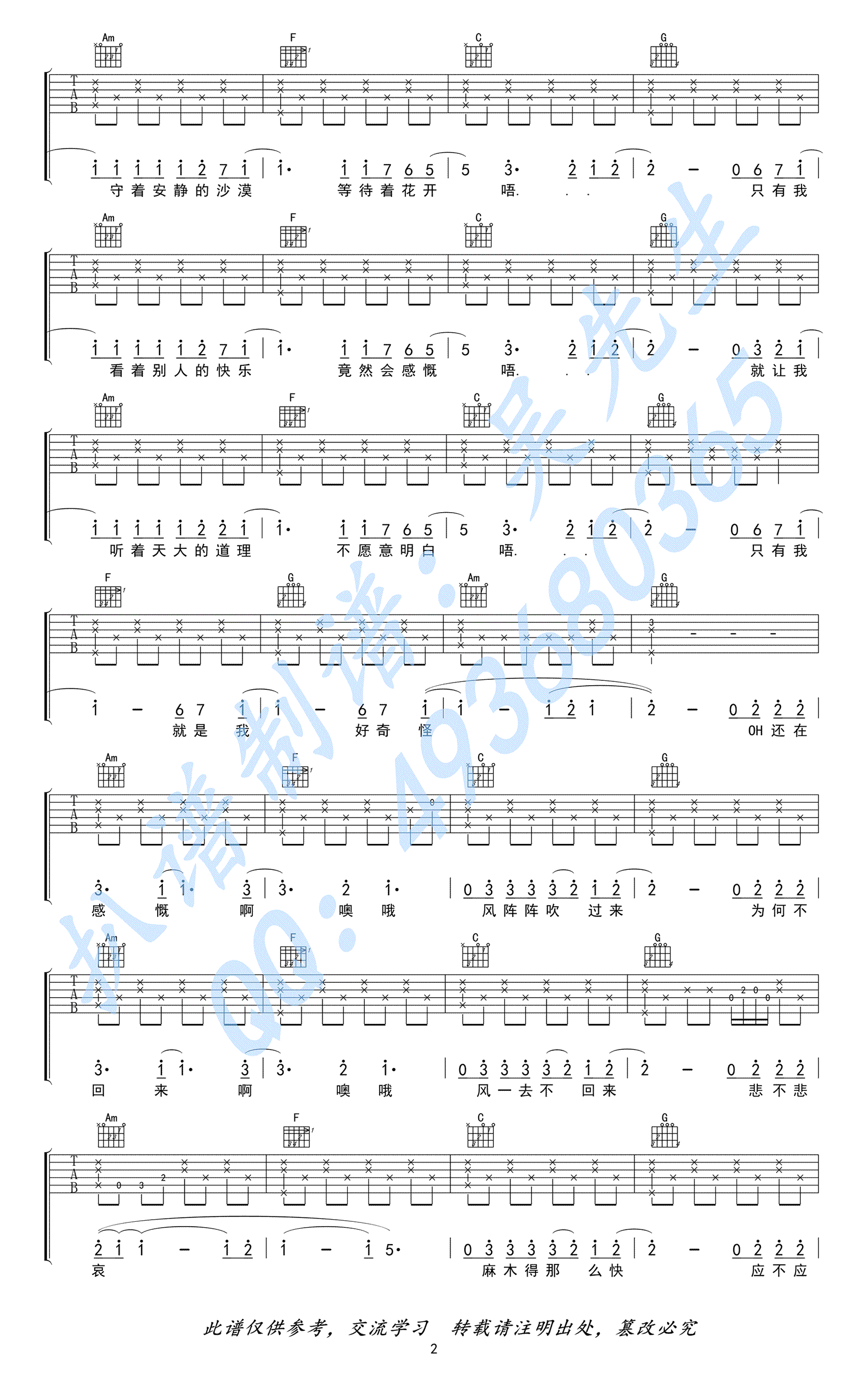 - 傻瓜吉他谱 温岚 G调指法 高清图片谱