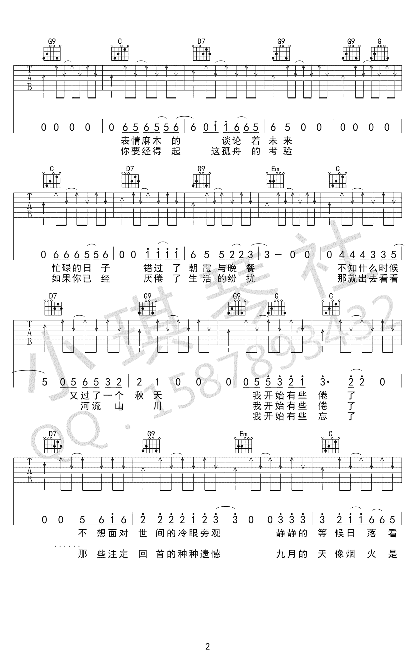 - 枯藤老树昏鸦吉他谱 符禹迅 G调指法 高清图片谱
