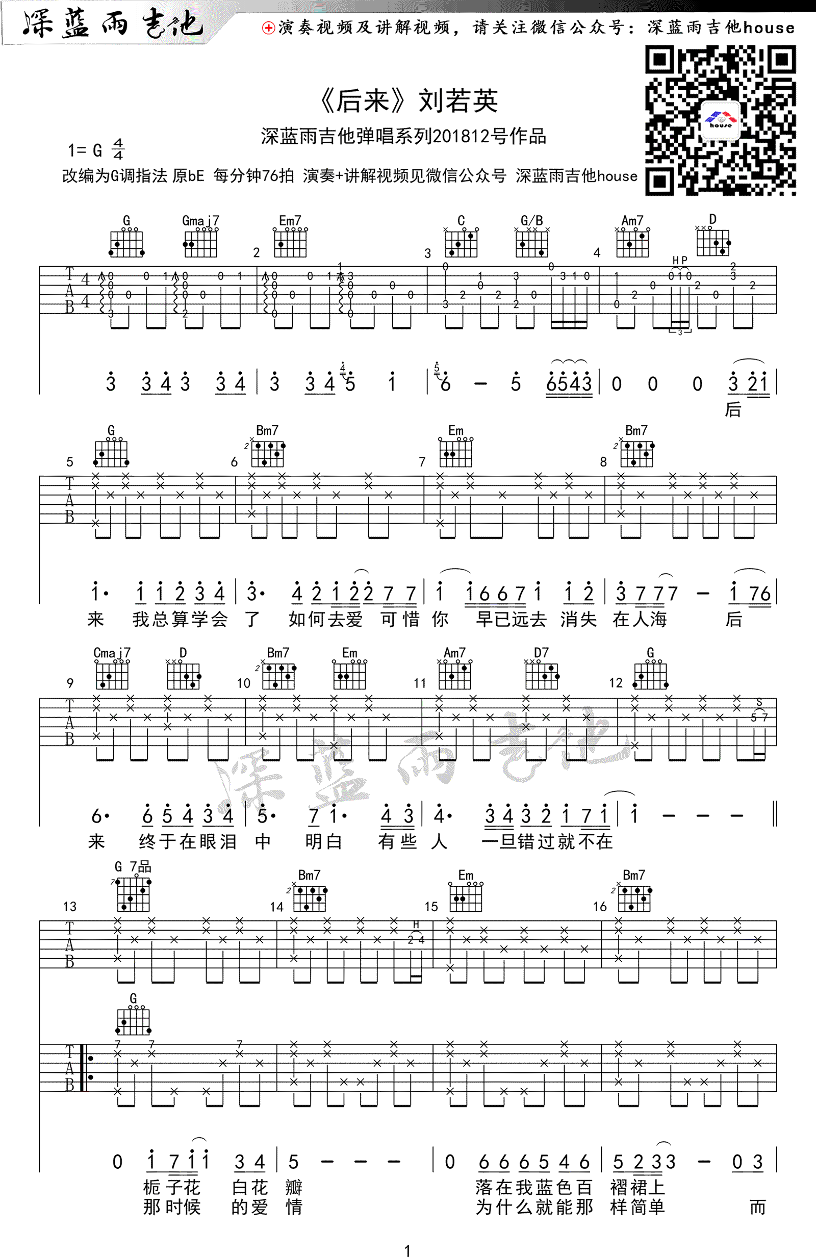 - 刘若英《后来》吉他谱_C调弹唱谱_高清图片谱
