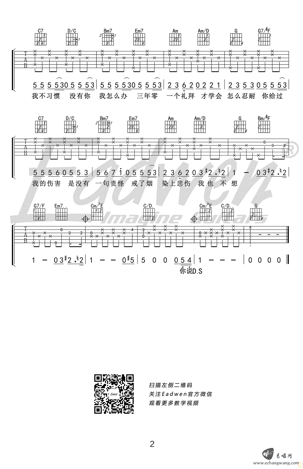 - 戒烟吉他谱 李荣浩 C调简单版 高清弹唱谱