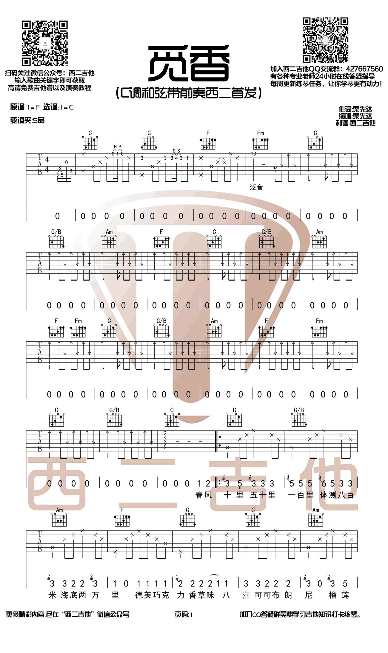 - 西安人的歌吉他谱 范炜与程渤智 抖音歌曲 高清图片谱