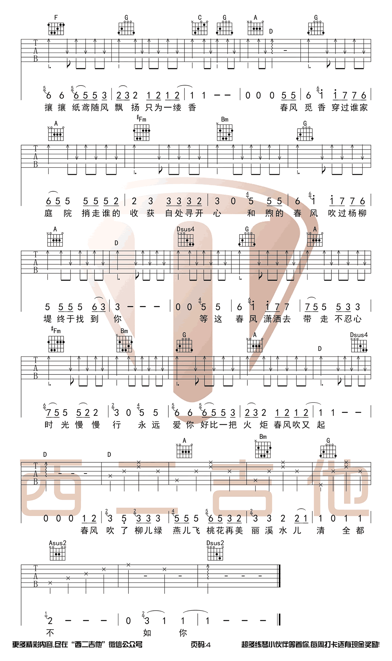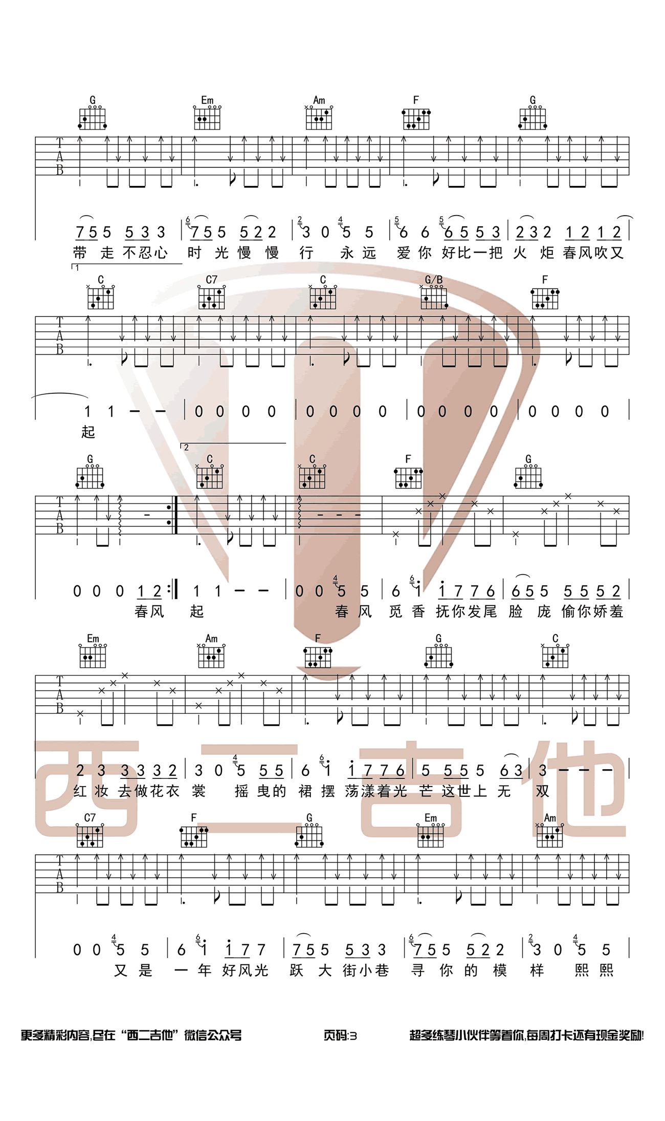 - 春风十里吉他谱 G调女生版 鹿先森乐队 弹唱谱