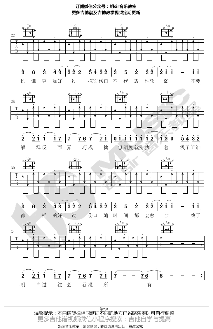 - 我们不一样吉他谱 大壮 G调弹唱谱 六线谱高清版