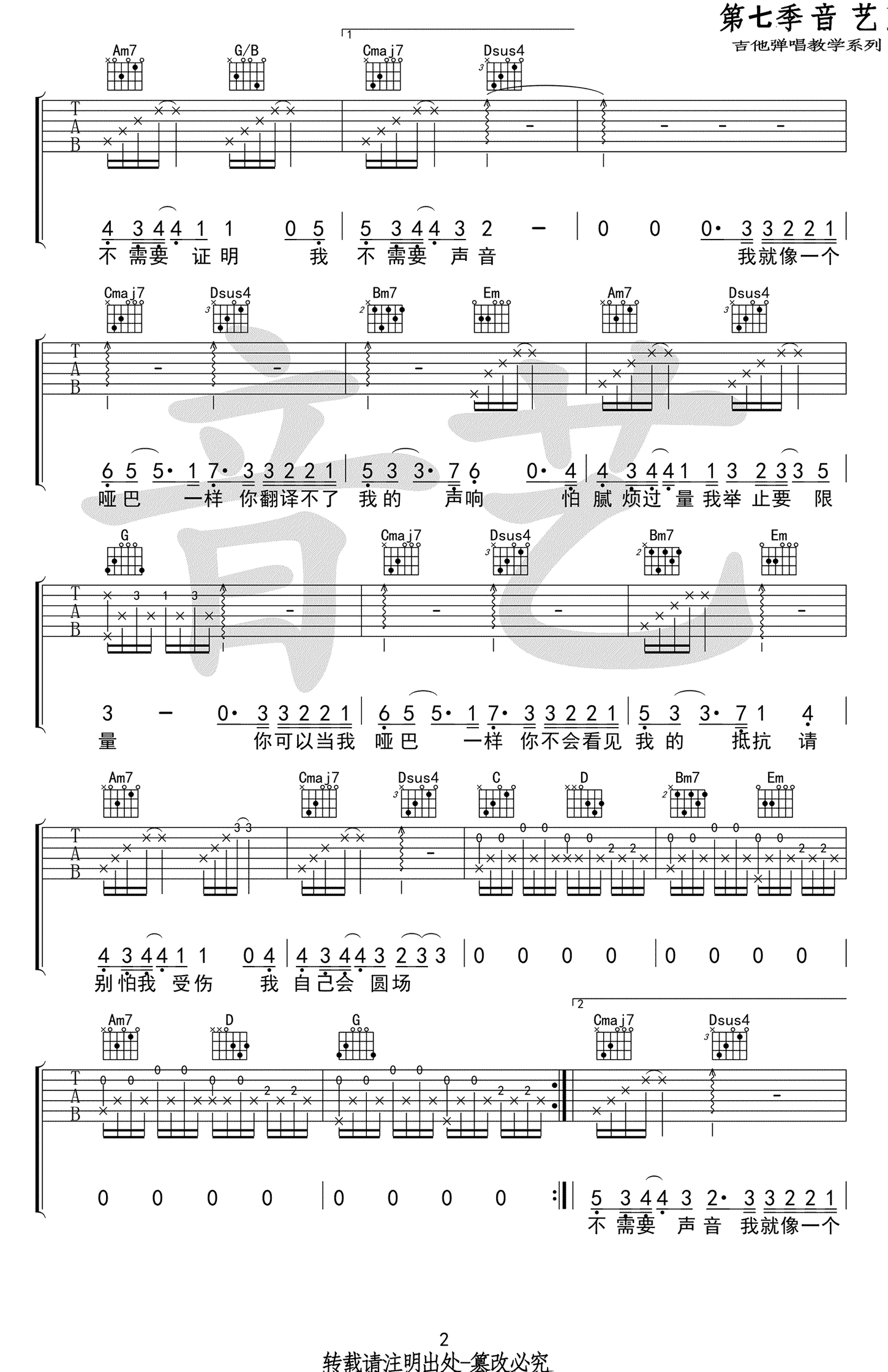 - 绅士指弹谱_薛之谦《绅士》吉他独奏谱_高清六线谱