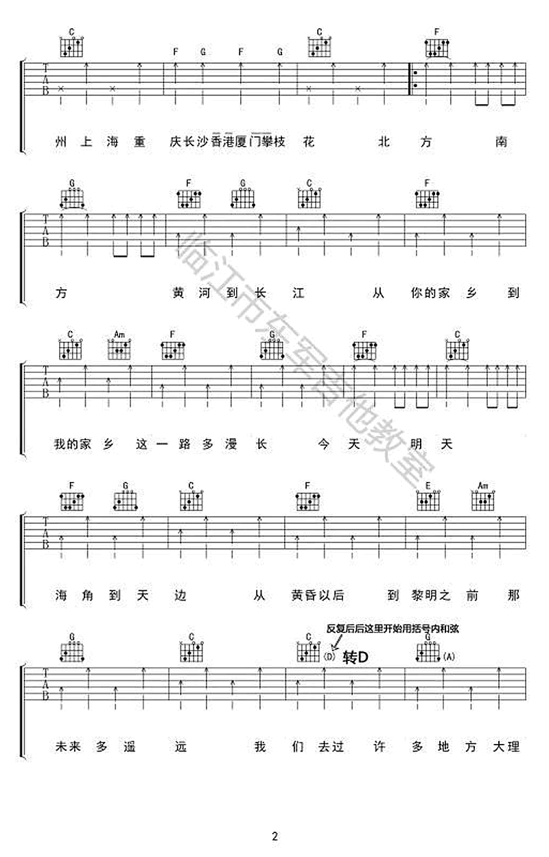 - 七色桥吉他谱 好妹妹乐队 C调弹唱六线谱