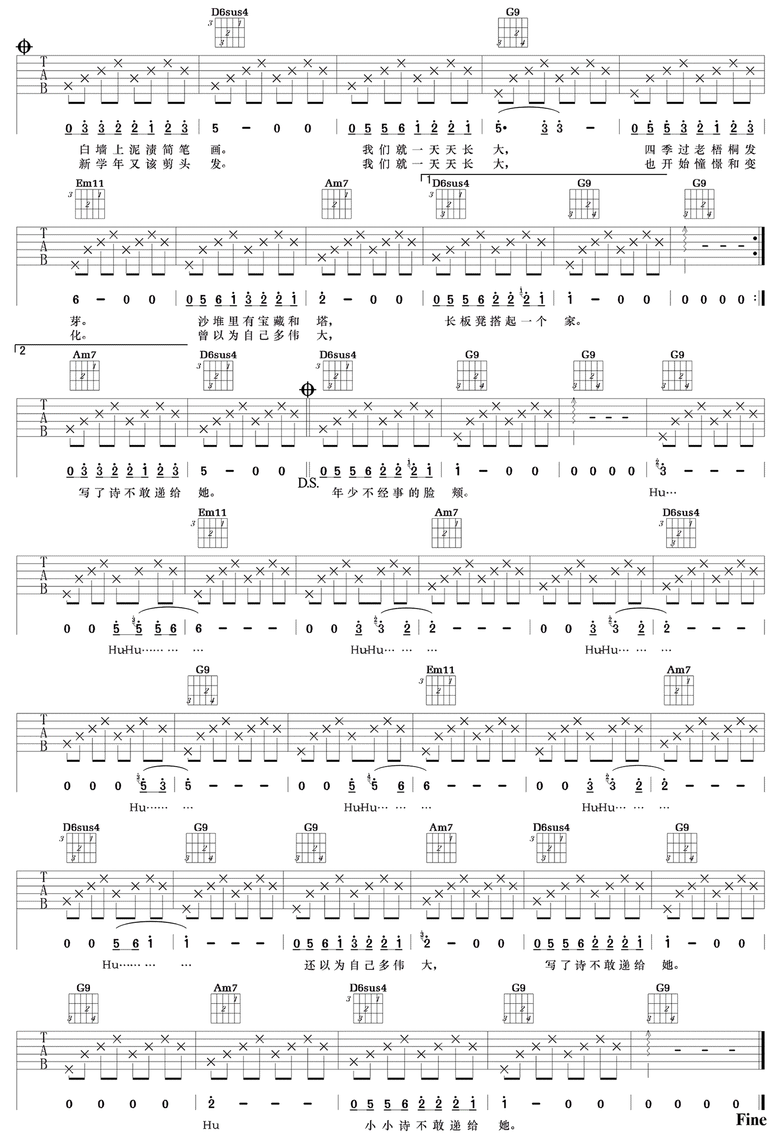 - 邵夷贝《小傻瓜》吉他谱 G调指法 高清图片谱