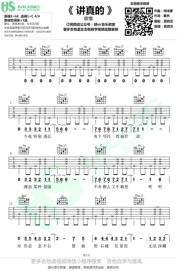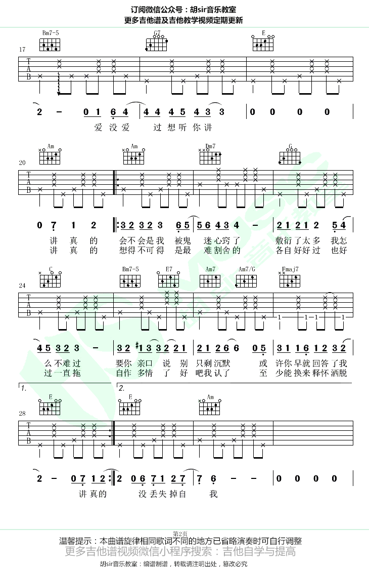 - 纸短情长吉他谱 C调 吉他弹唱+教学视频 小磊吉他编配
