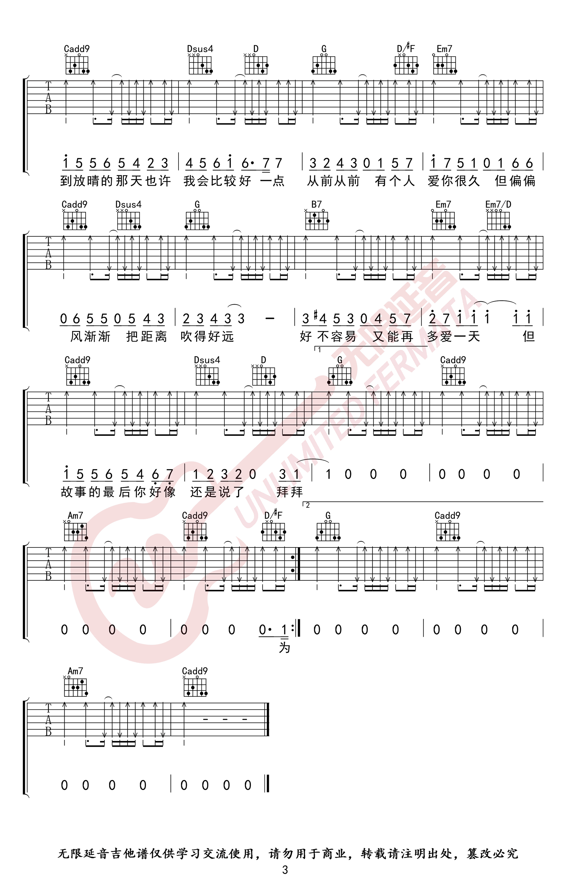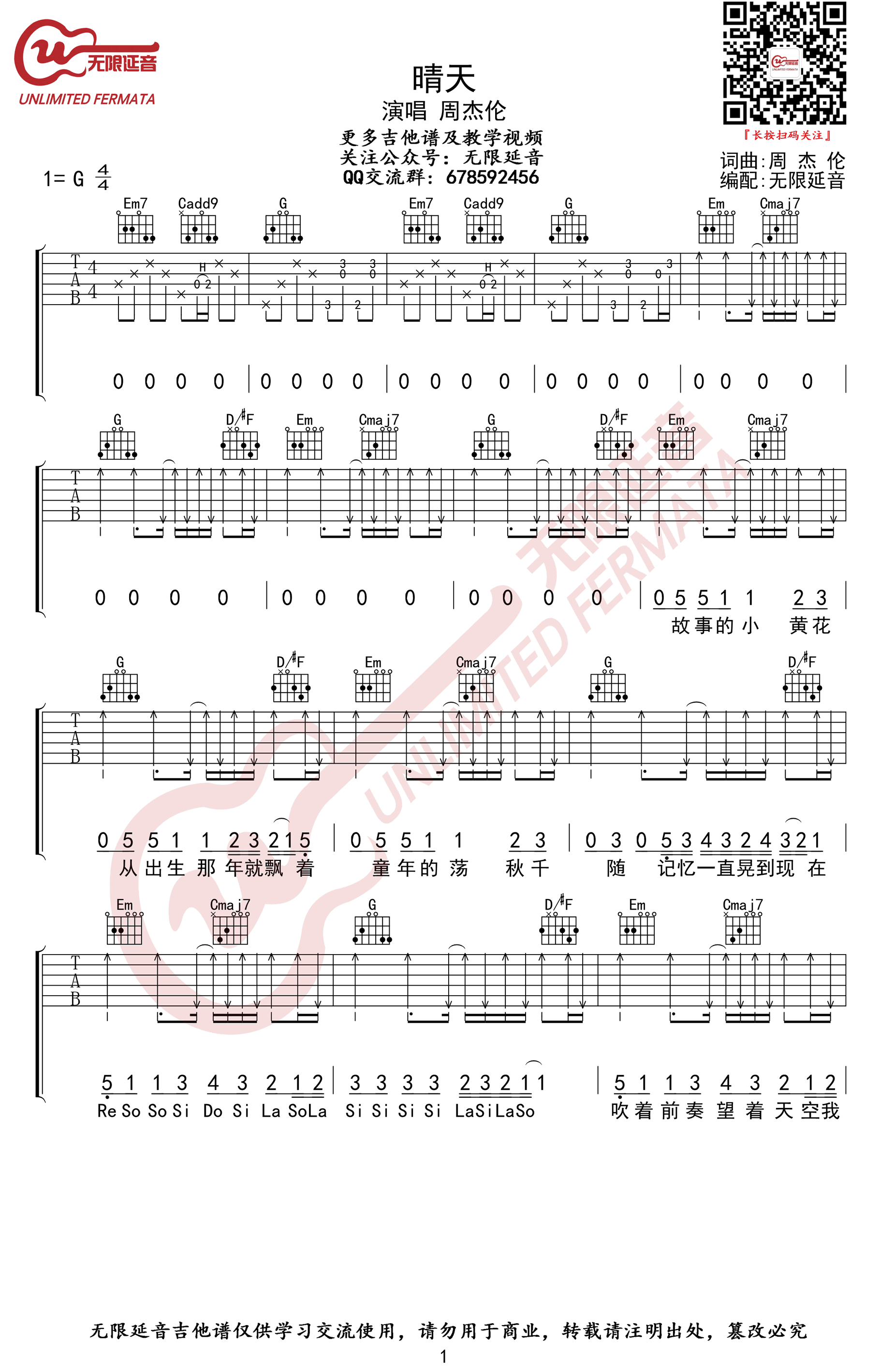 - 周杰伦《晴天》吉他谱_G调弹唱谱_高清版本