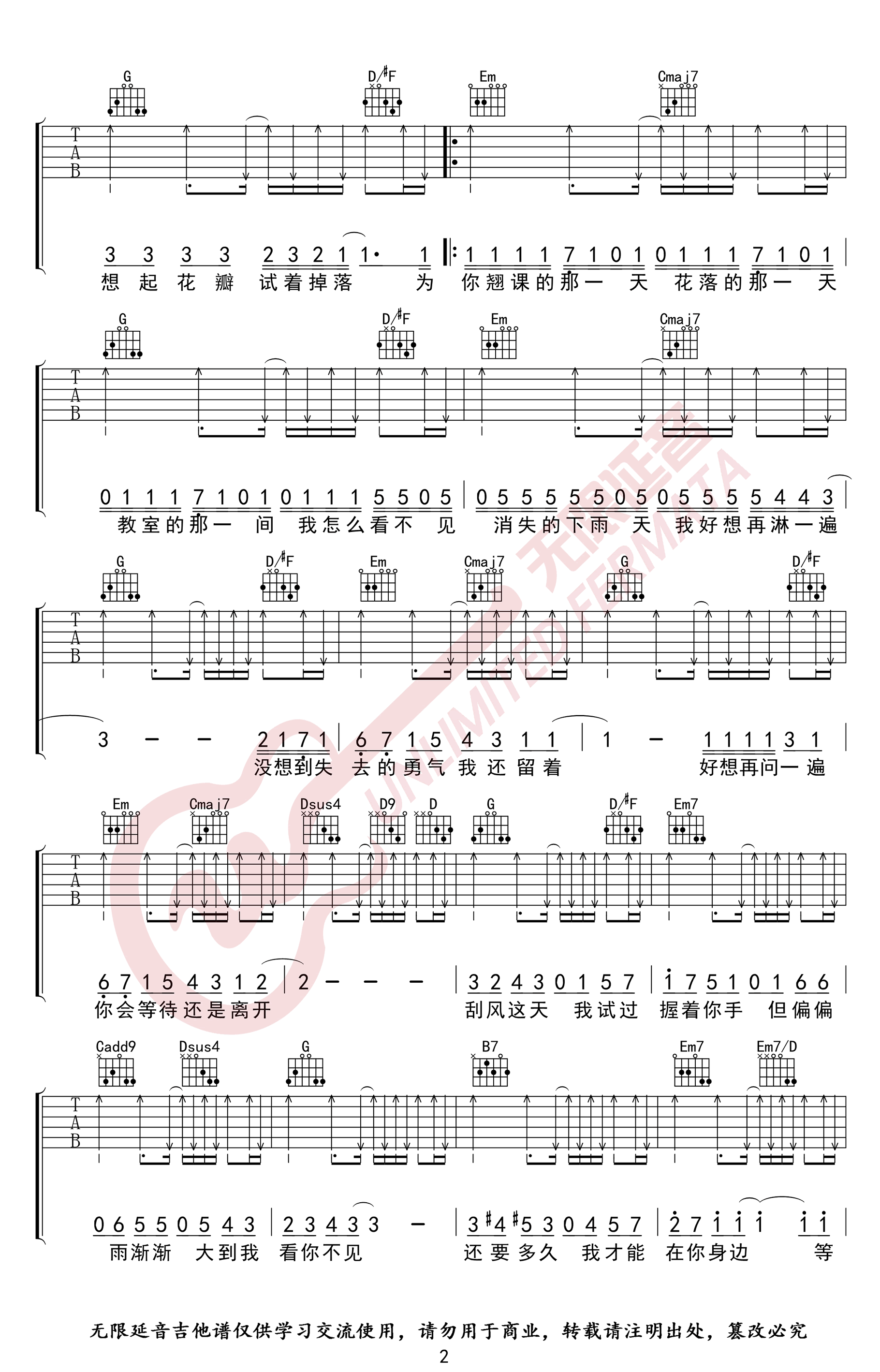 - 等你下课吉他谱 周杰伦 G调标准版 高清六线谱