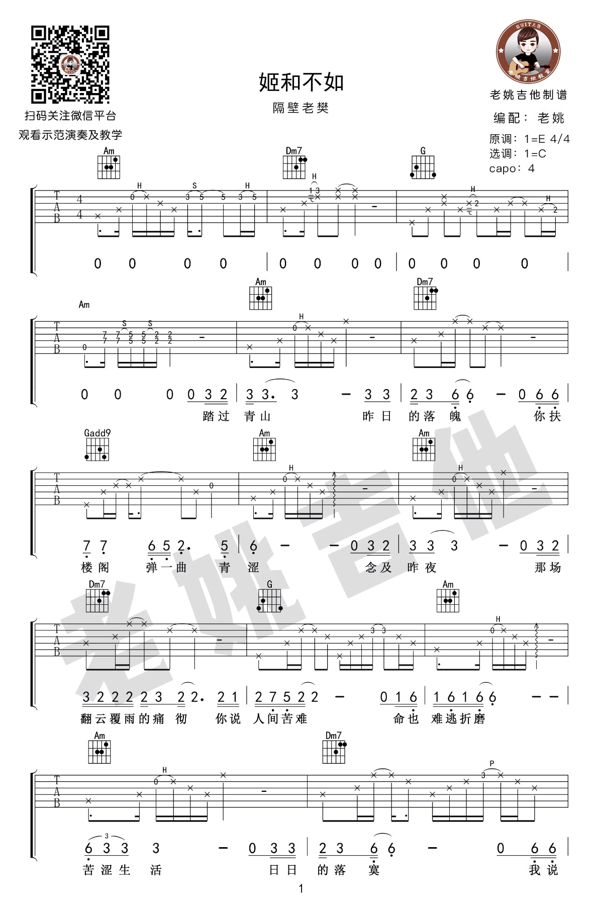 - 隔壁老樊《妓和不如》吉他谱_C调指法_弹唱教学视频
