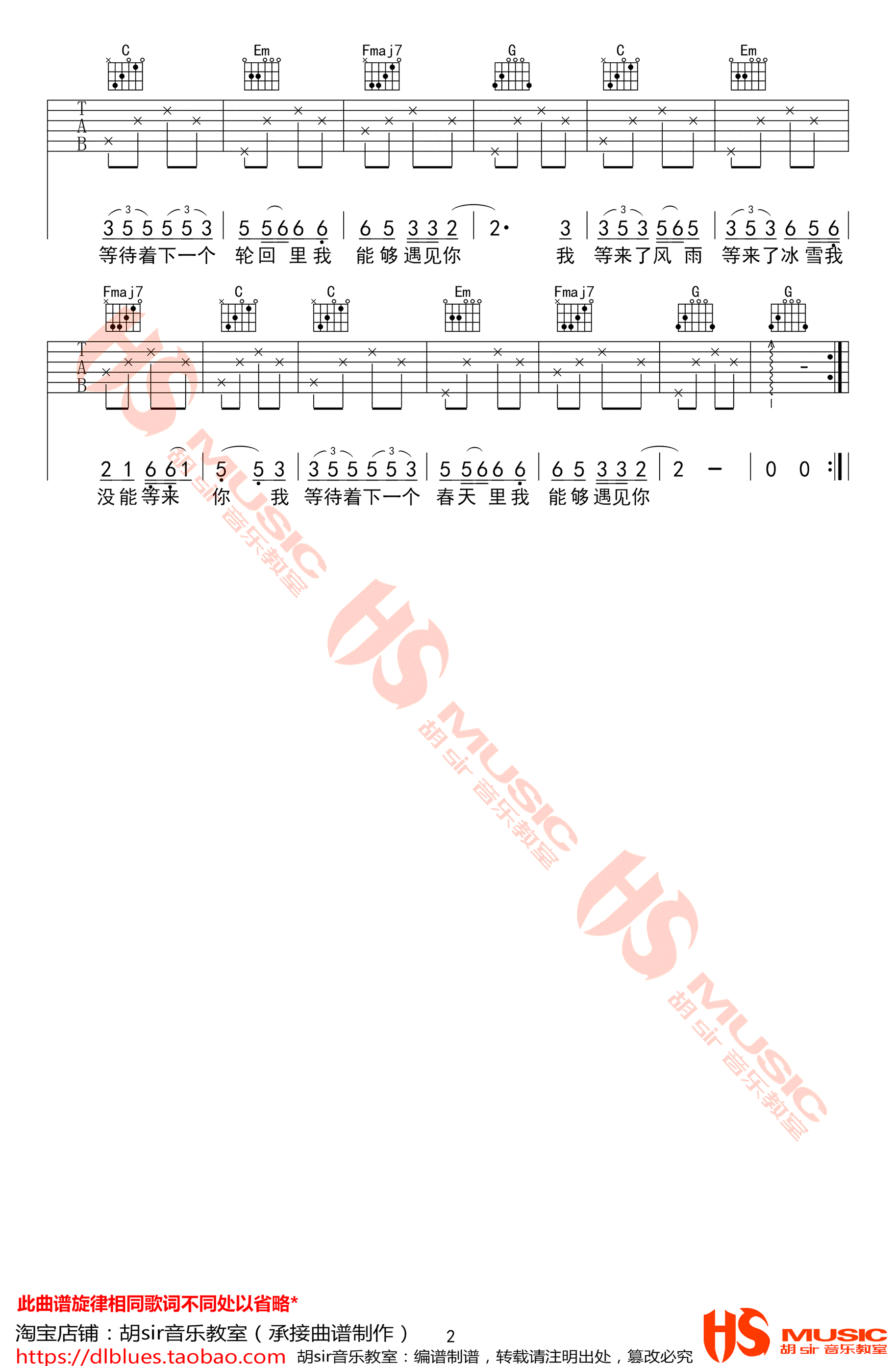 陈硕子《等你》吉他谱-1陈硕子《等你》吉他谱-2