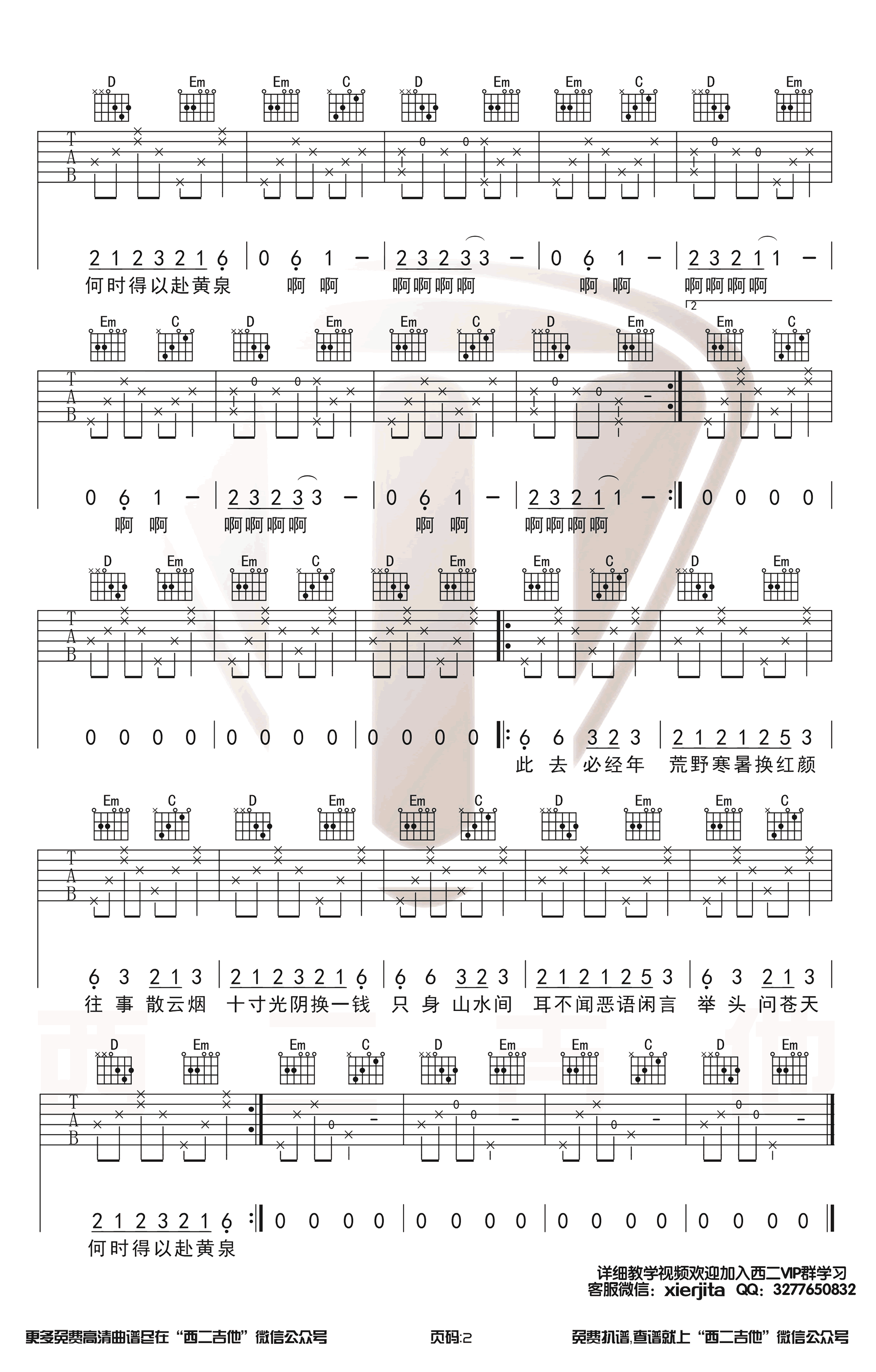 - 南来北往吉他谱 花粥 弹唱六线谱 手写版