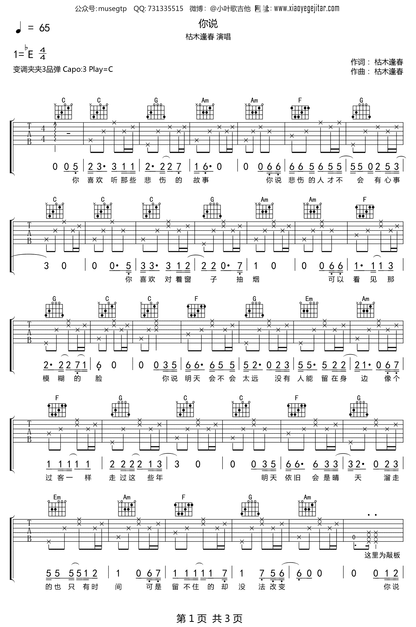 - 你说吉他谱_枯木逢春_C调弹唱谱_高清版