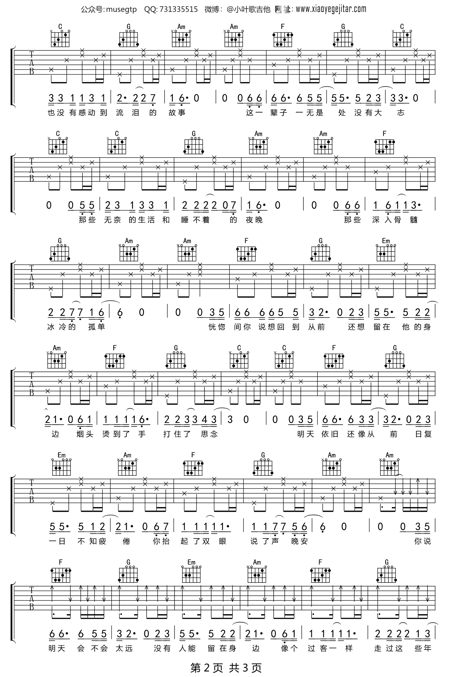 - 只是太爱你吉他谱_张敬轩_C调简单版_高清弹唱谱