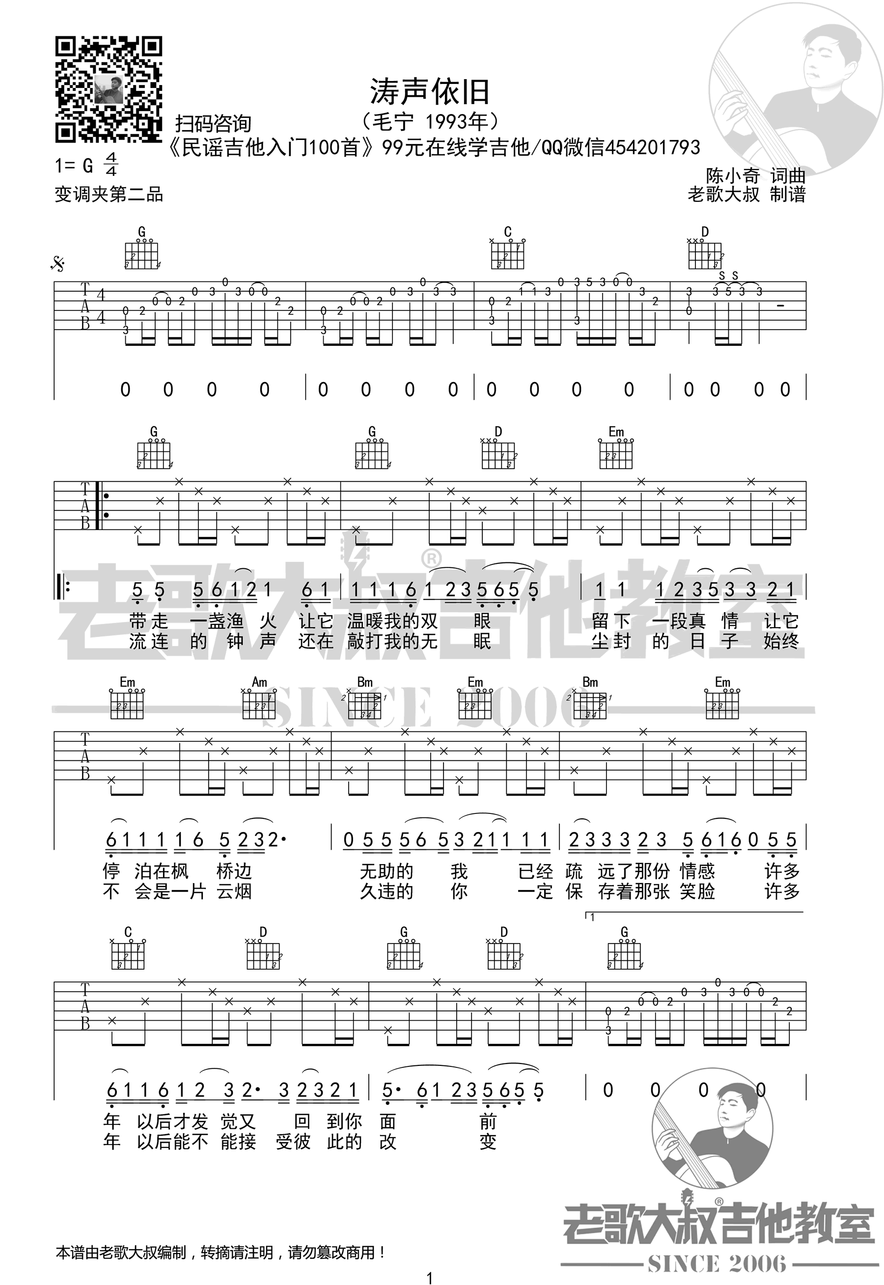 - 涛声依旧吉他谱_毛宁_G调_高清弹唱谱