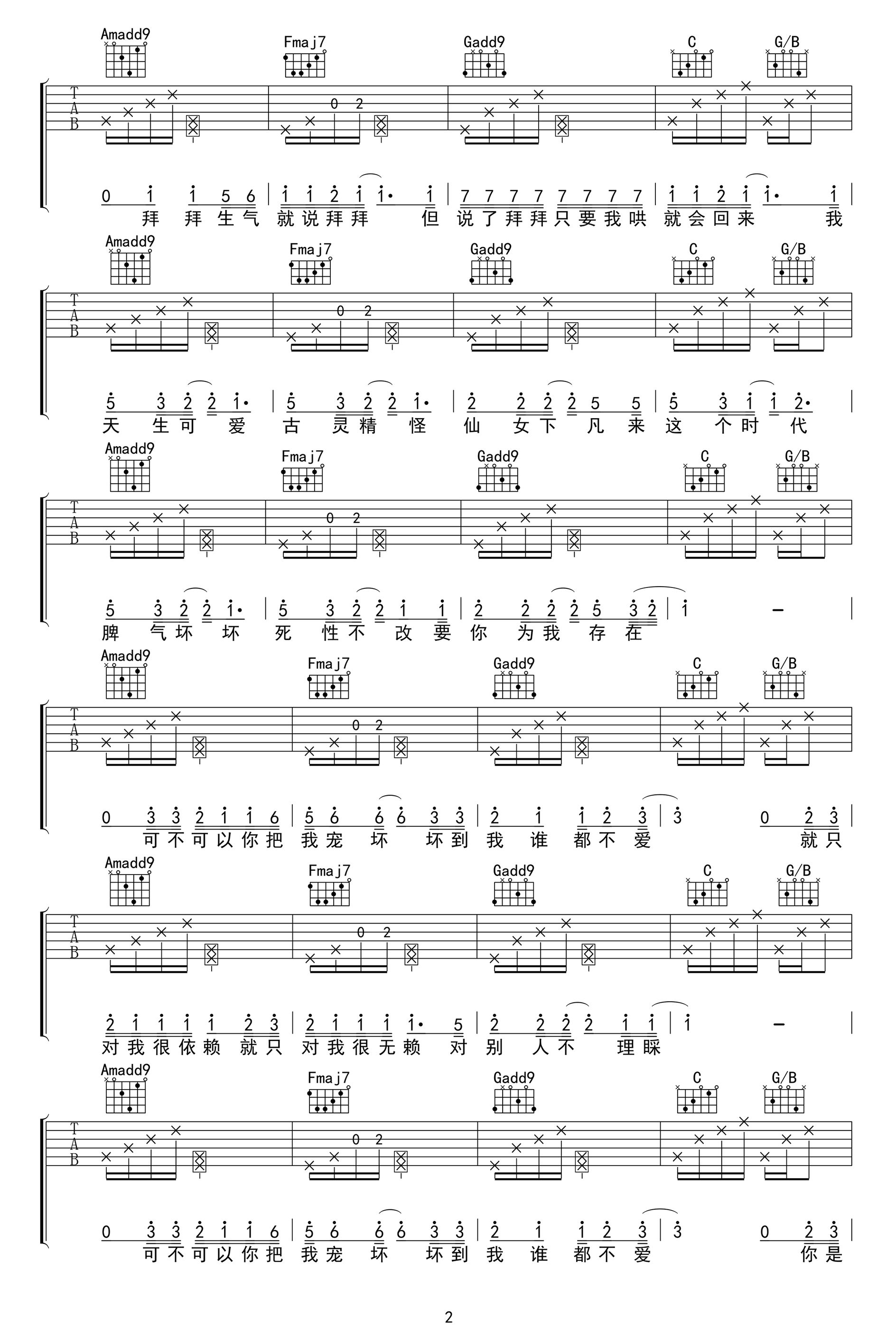 - 宠坏吉他谱_李俊佑小潘潘_C调_弹唱六线谱