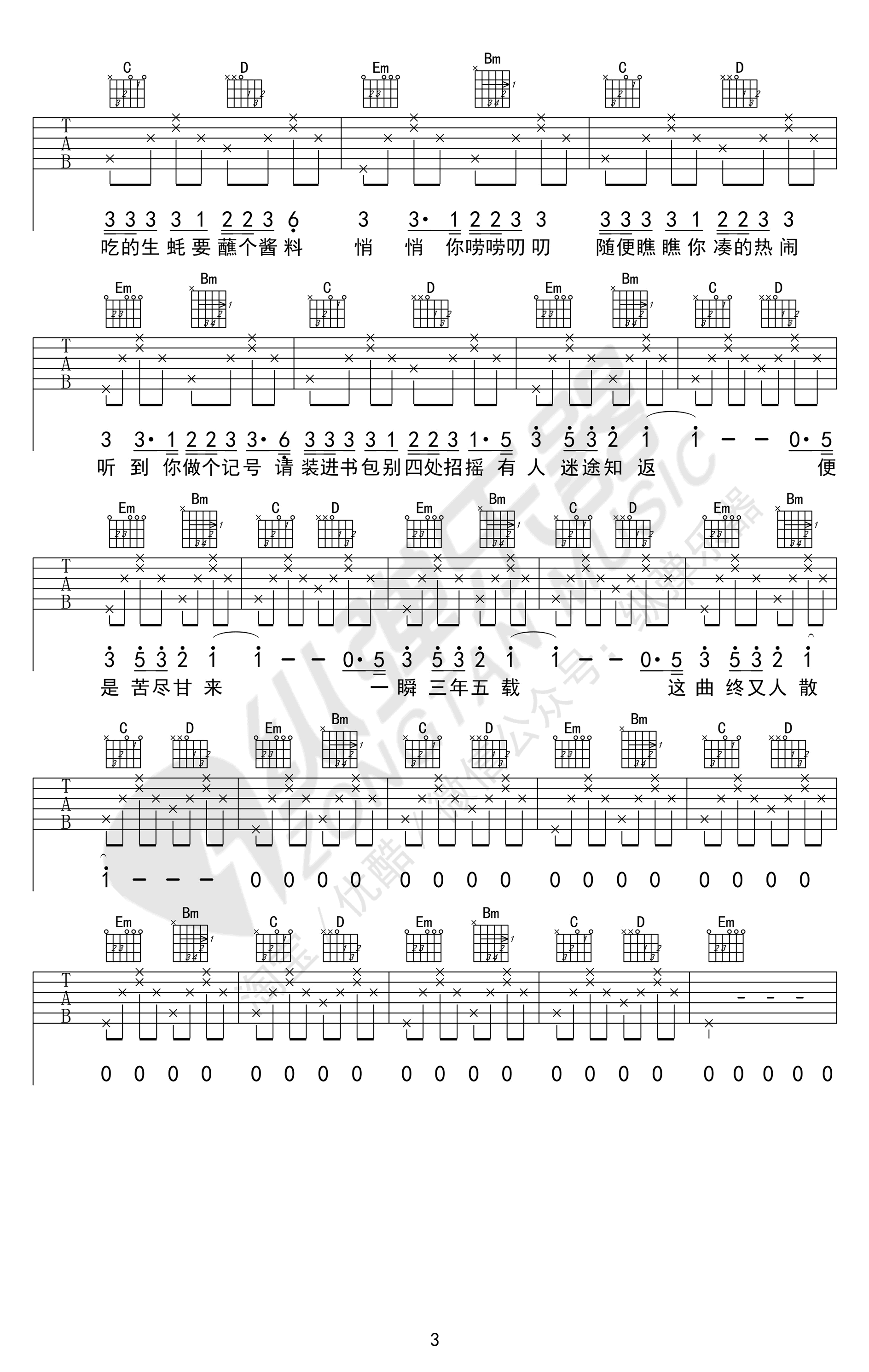 - 屌丝之歌吉他谱_手写版六线谱_花粥