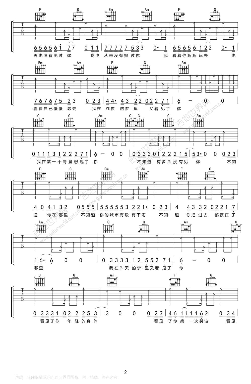 - 我在昨天的梦里又看见了你吉他谱_枯木逢春_C调弹唱谱