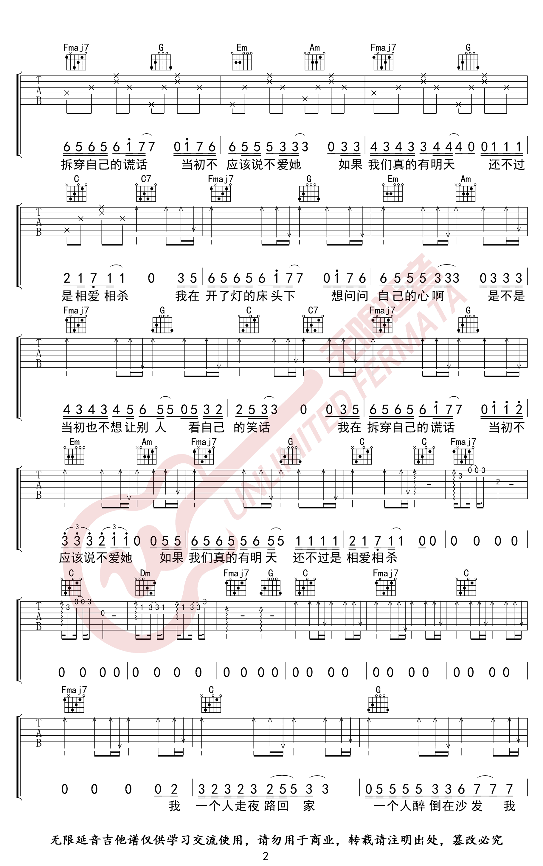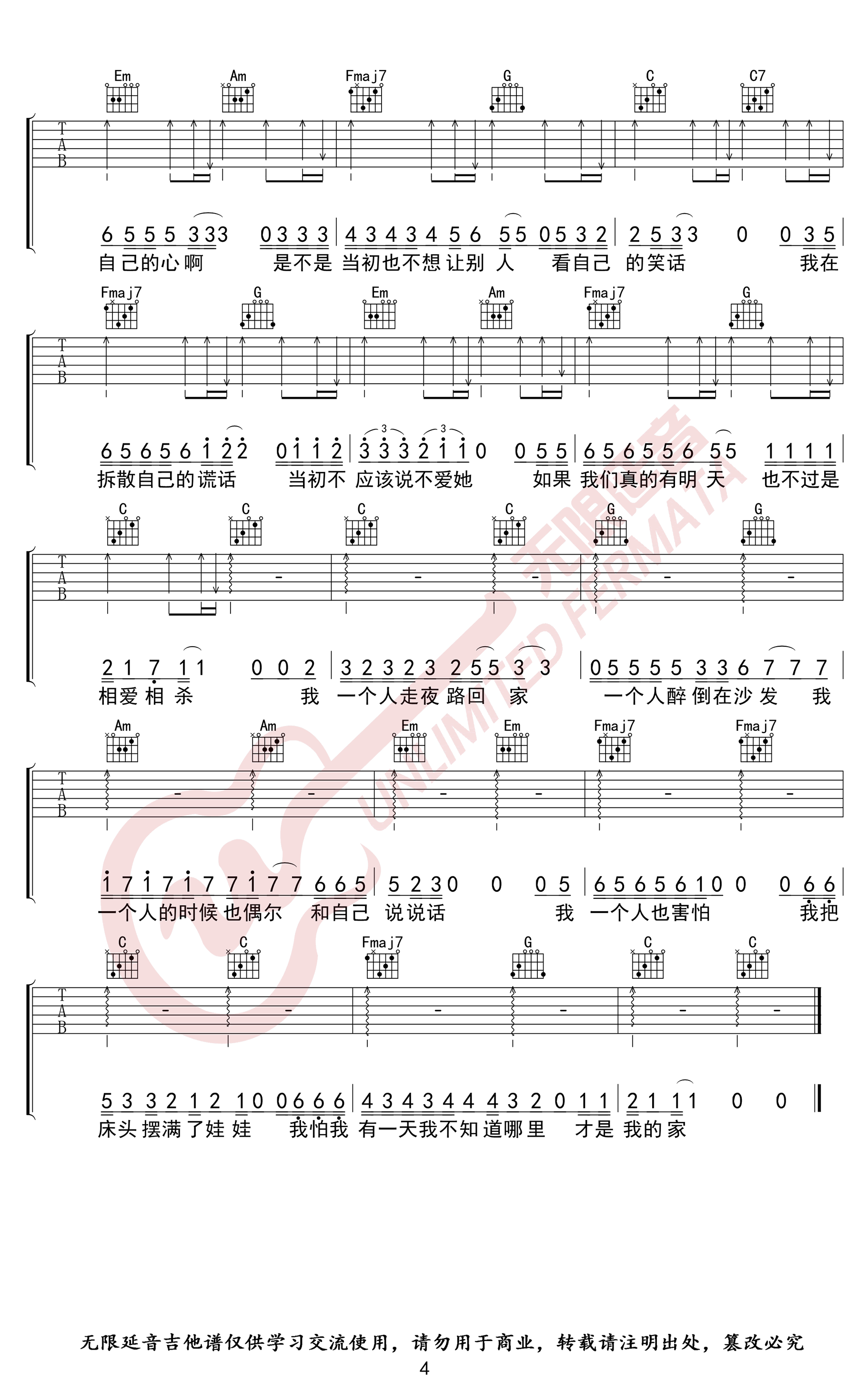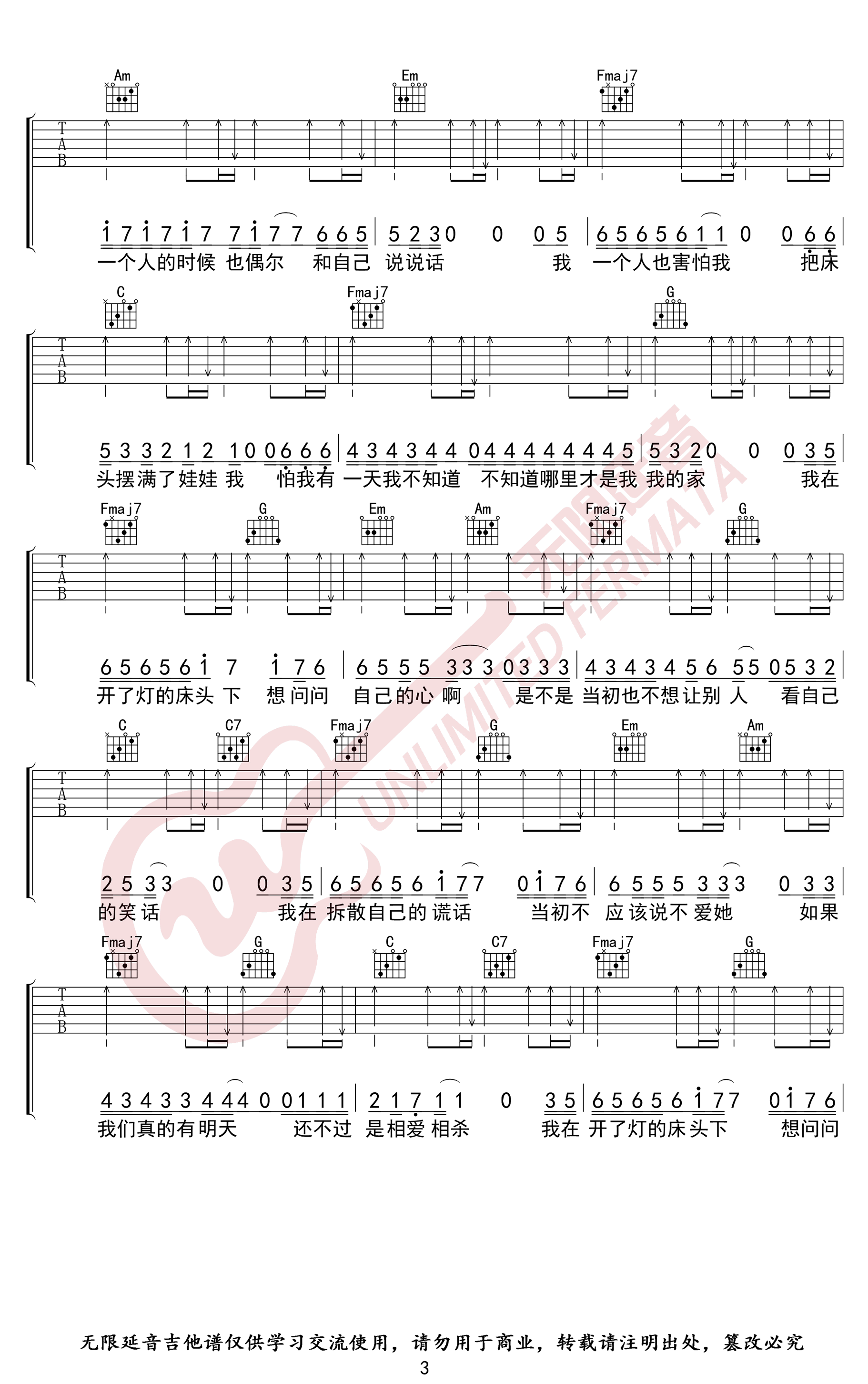 - 关于孤独我想说的话吉他谱_隔壁老樊_C调_高清完整版
