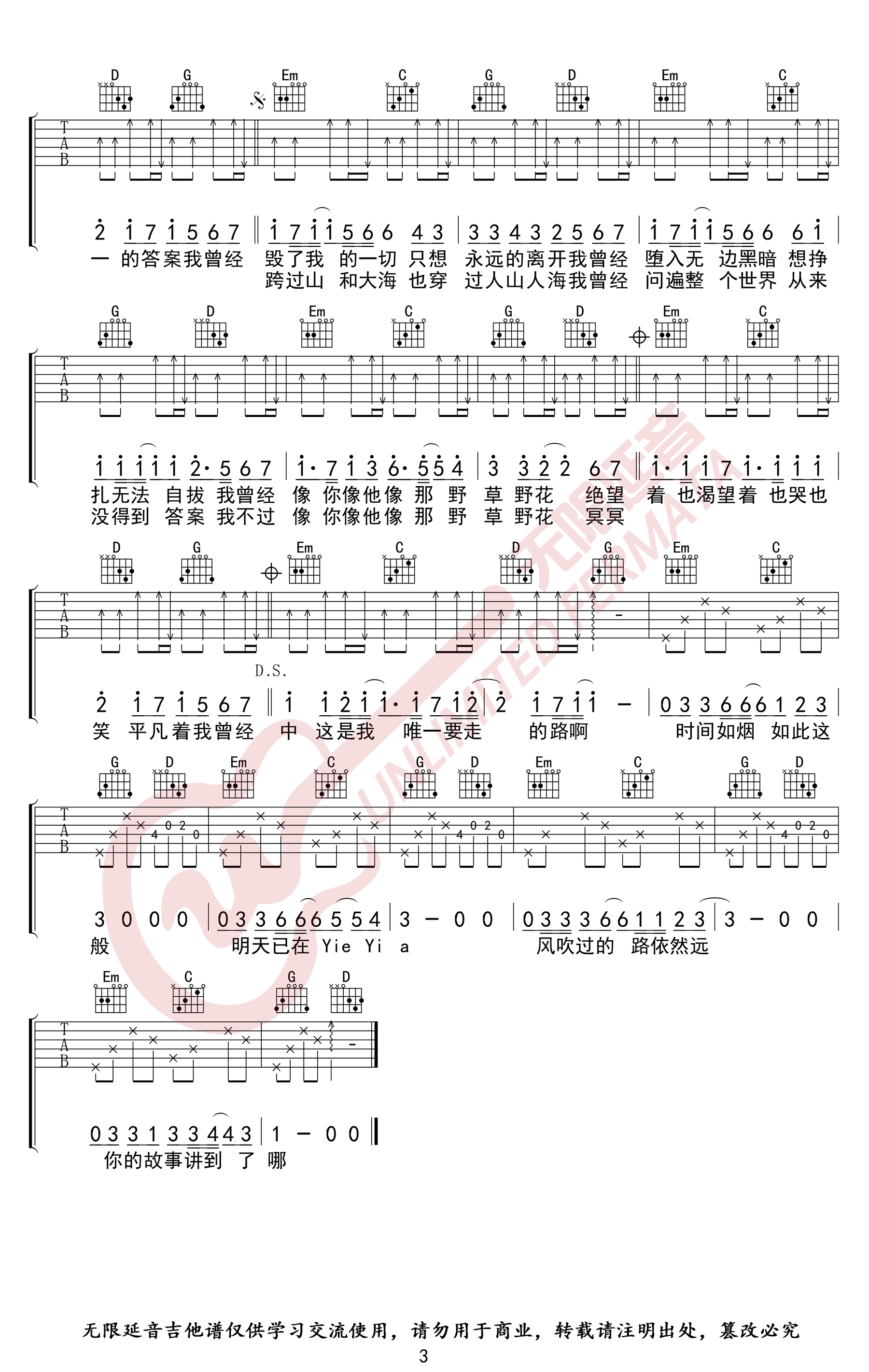 - 平凡之路吉他谱_朴树_G调指法_弹唱六线谱