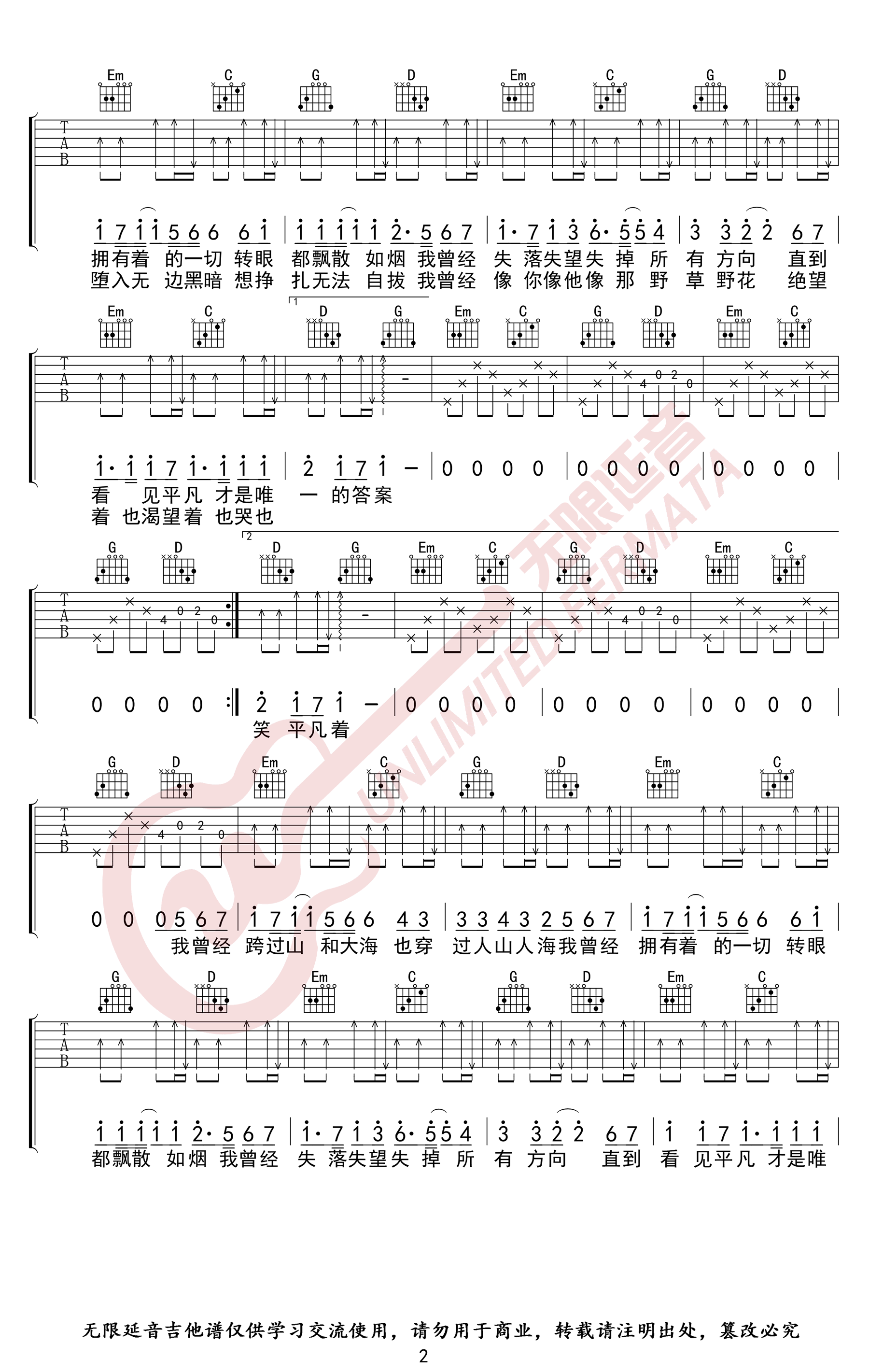 - 平凡之路吉他谱_朴树_平凡之路六线谱