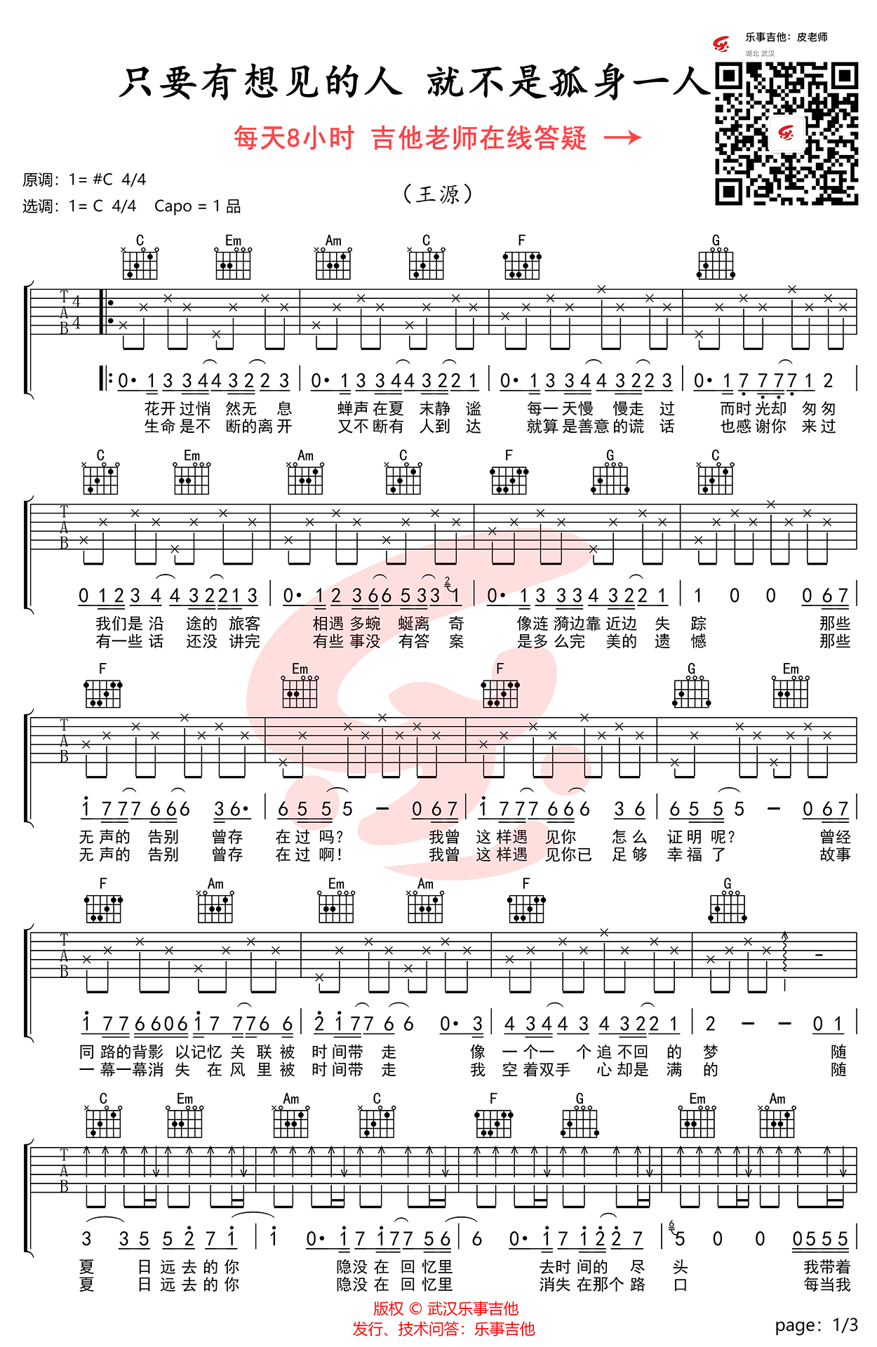 - 只要有想见的人,就不是孤身一人吉他谱_王源_弹唱教学视频