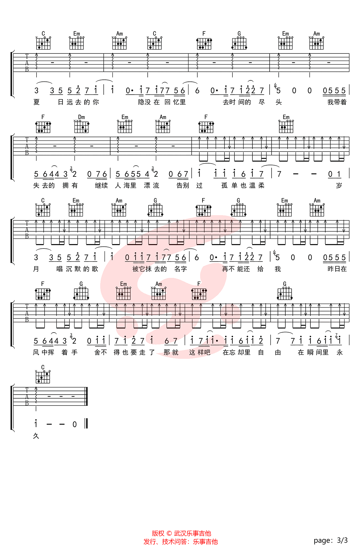 - 李玖哲《夏天》吉他谱_G调弹唱谱_图片谱