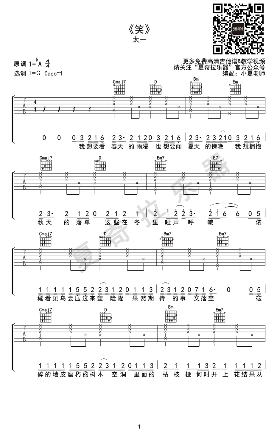 - 太一《笑》吉他谱_G调_弹唱六线谱