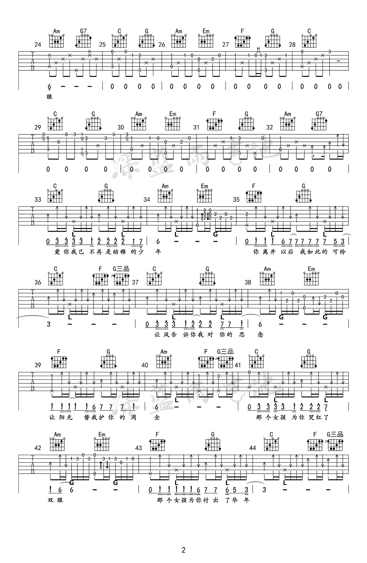 - 张泽熙《那个女孩》吉他谱_C调_弹唱六线谱
