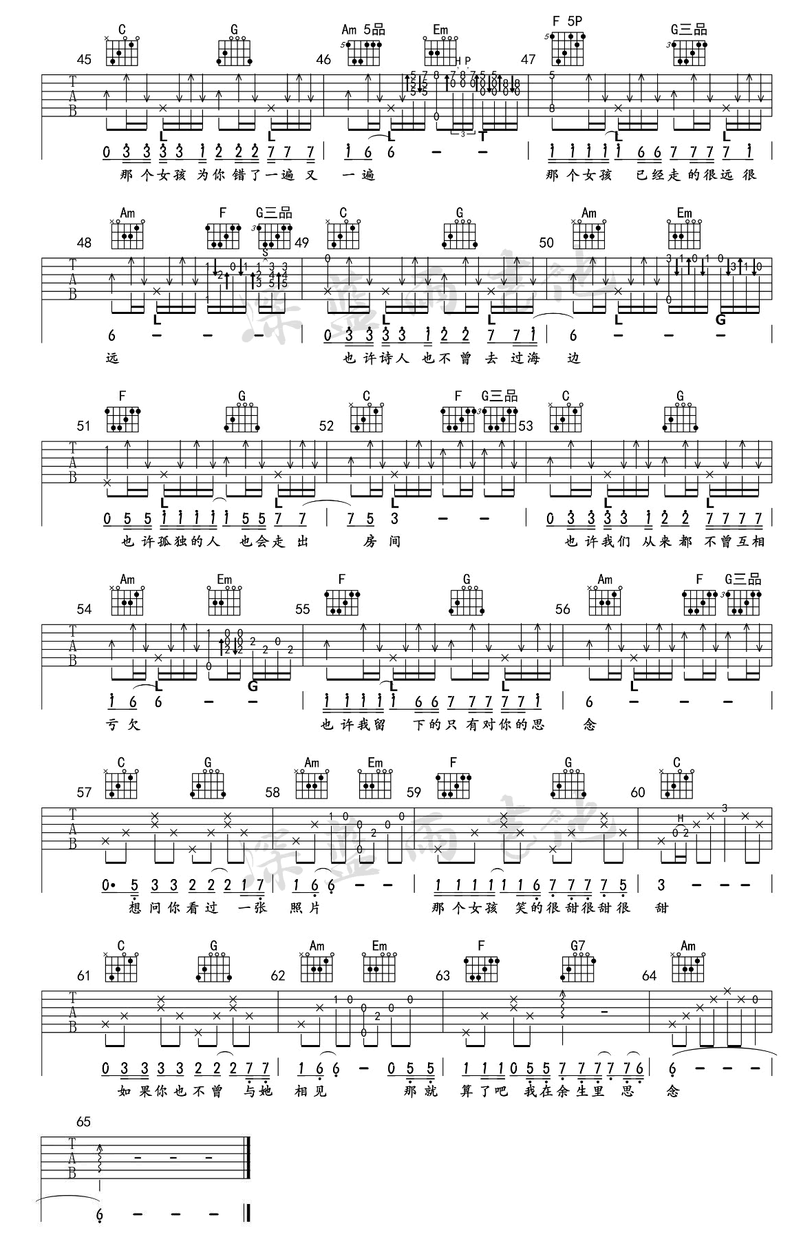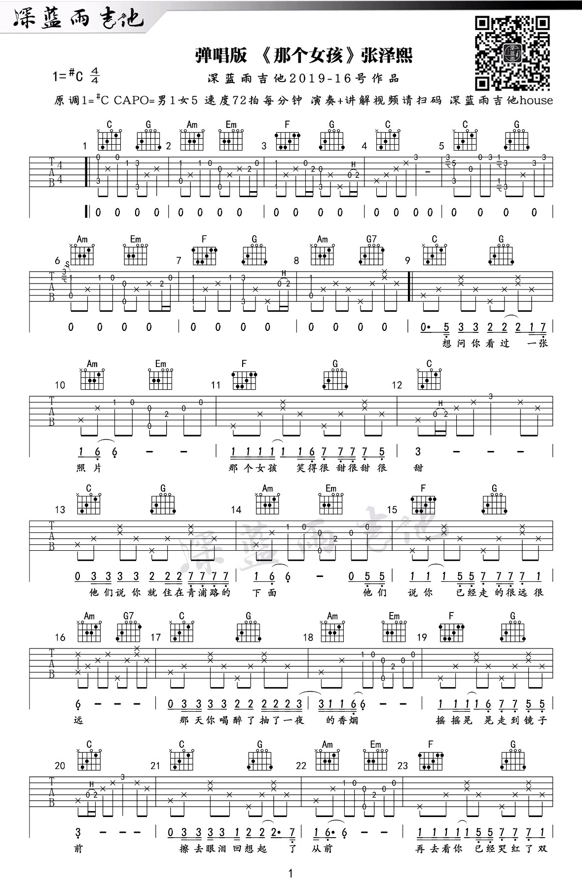 - 那个女孩吉他谱_张泽熙_原版编配_吉他教学视频