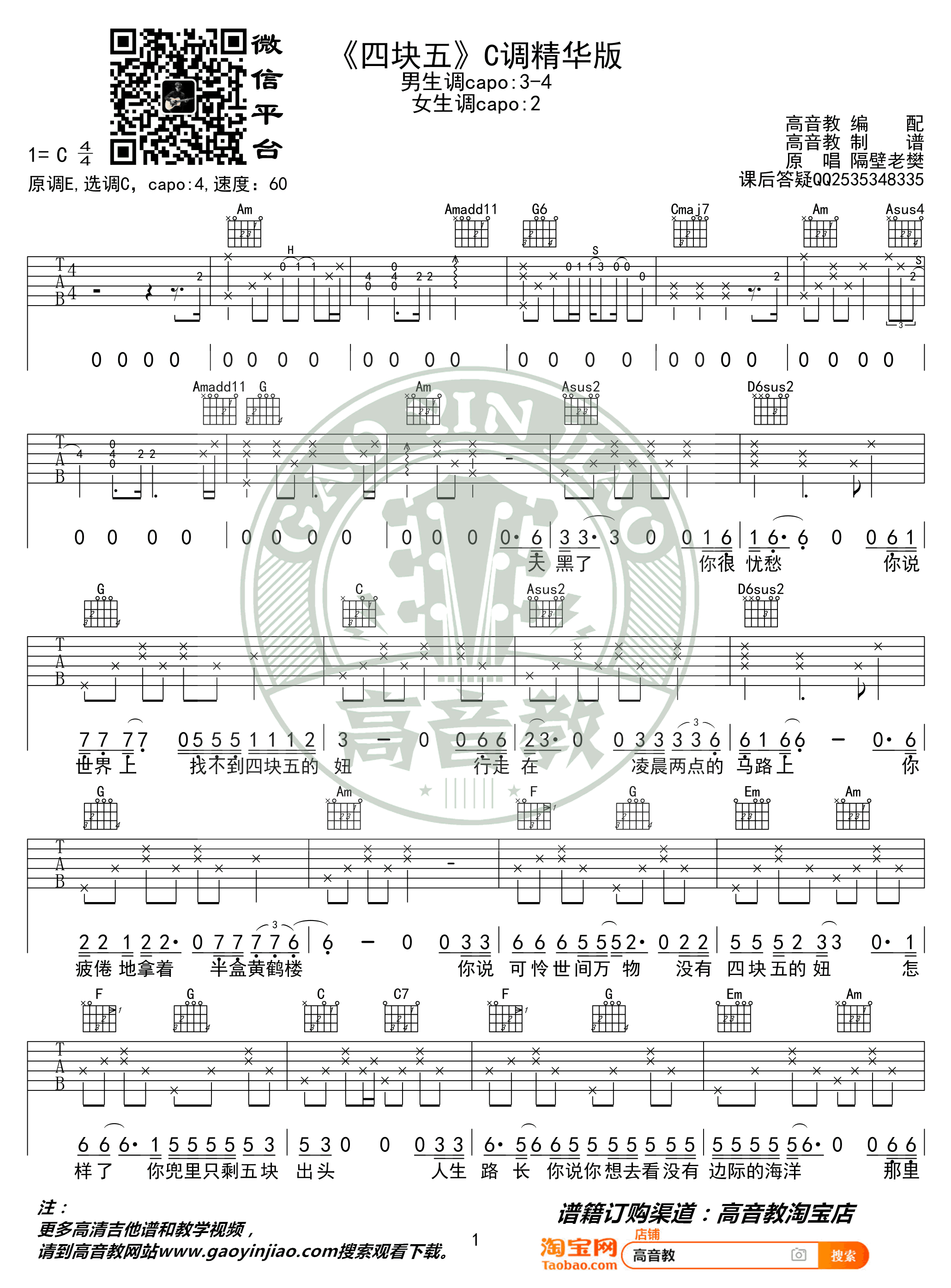 - 四块五吉他谱_隔壁老樊_C调弹唱谱_高清版