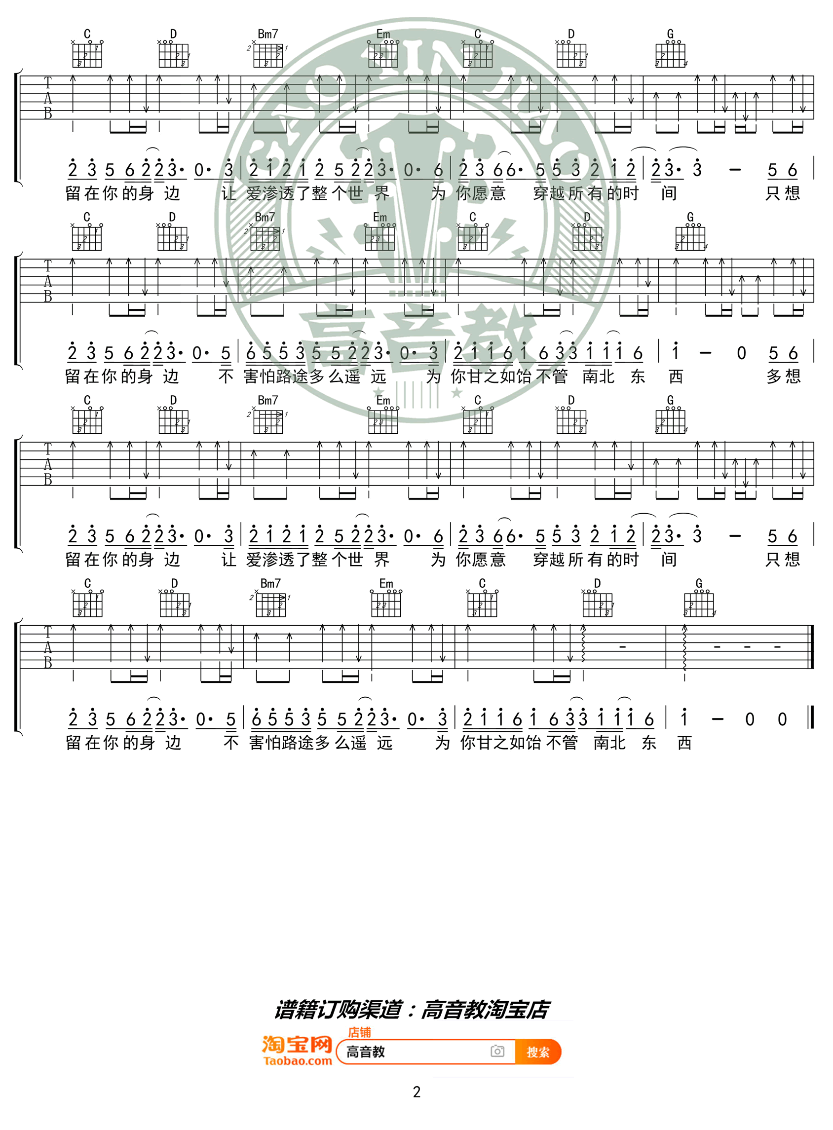 - 《我愿意平凡的陪在你身旁》吉他谱_C调六线谱_王七七