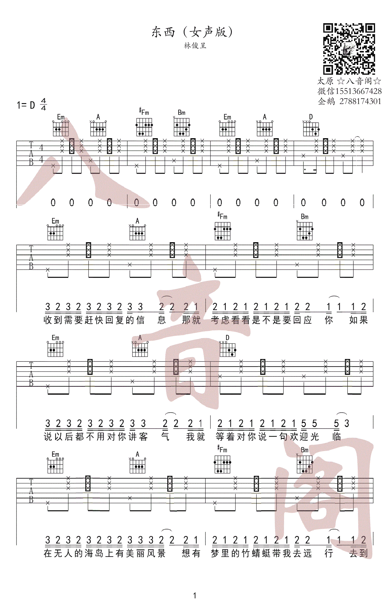 - 林俊呈《东西》吉他谱_女生版_弹唱示范视频