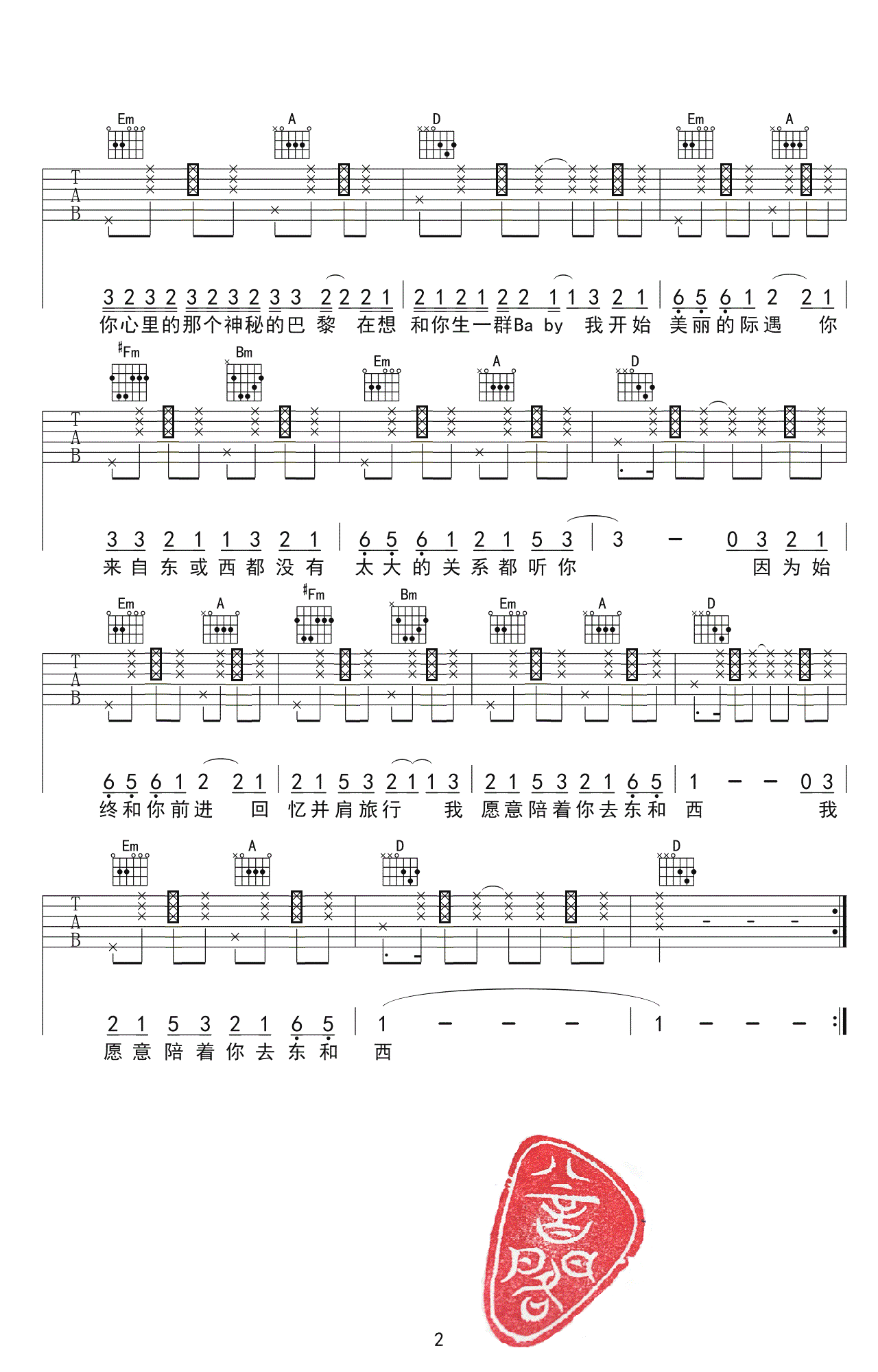 - 春风十里吉他谱_鹿先森乐队_E调原版_高清弹唱谱