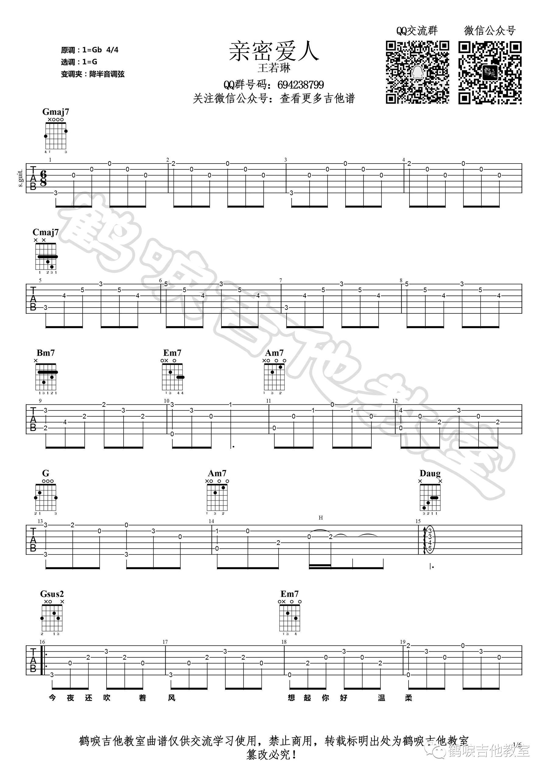 - 亲密爱人吉他谱_王若琳_G调指法_吉他弹唱示范
