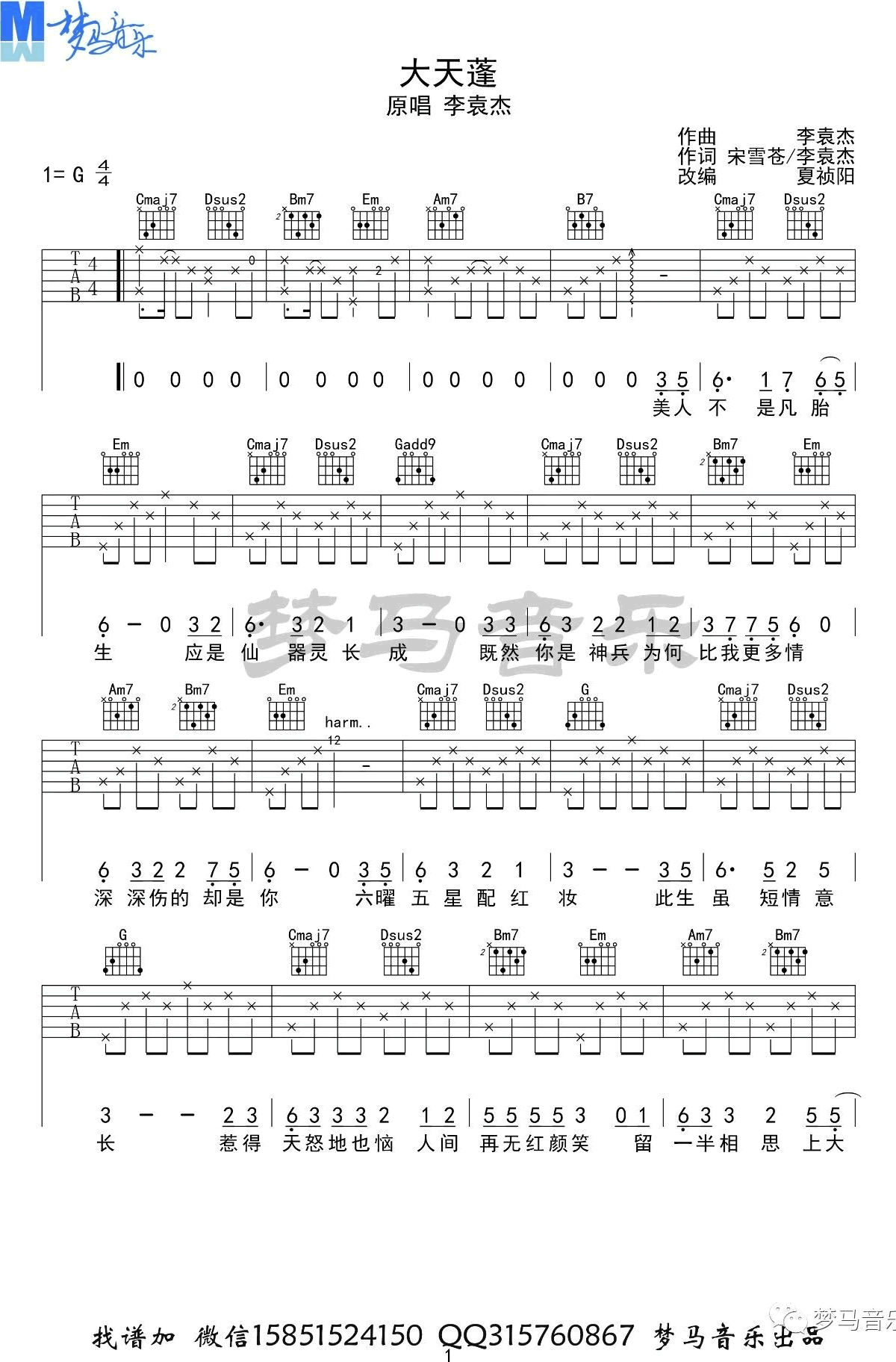 - 大天蓬吉他谱_李袁杰_电影主题曲_弹唱谱