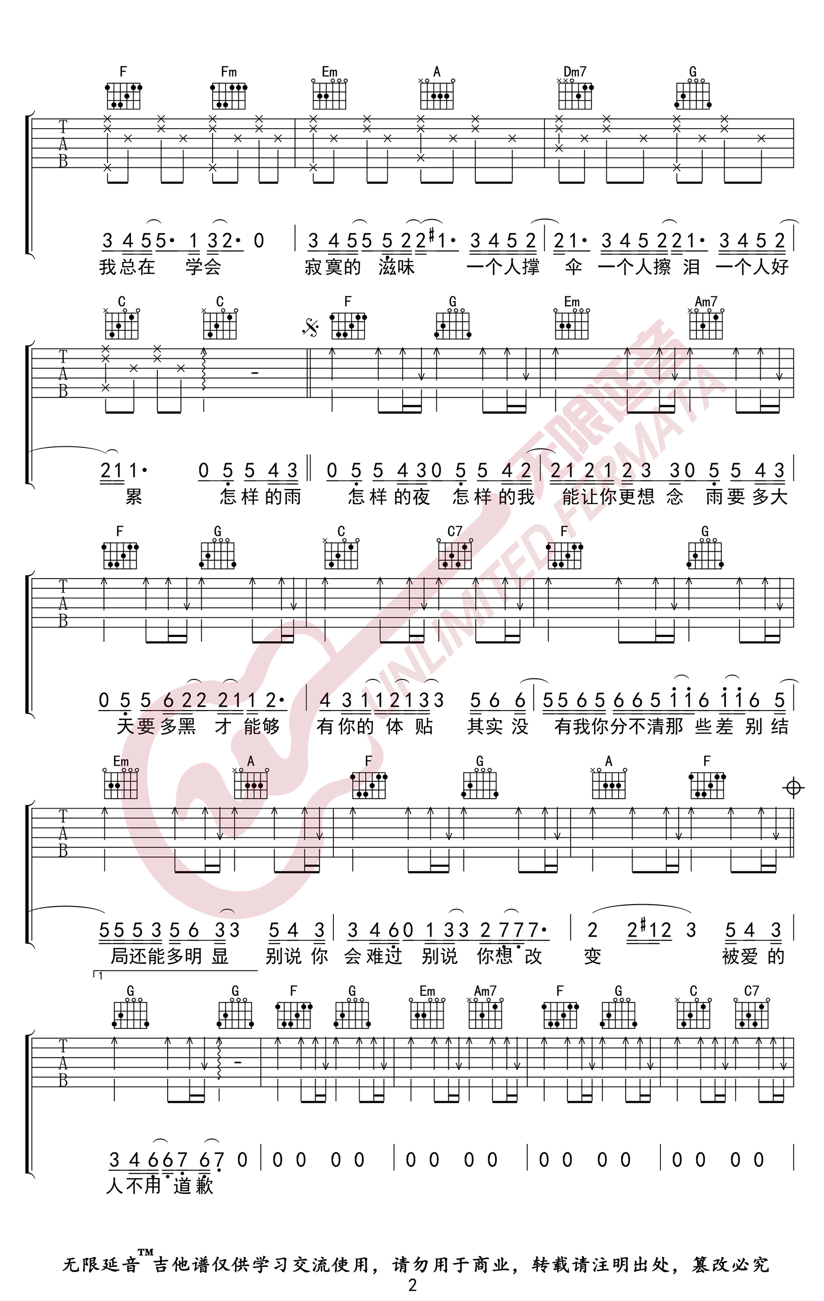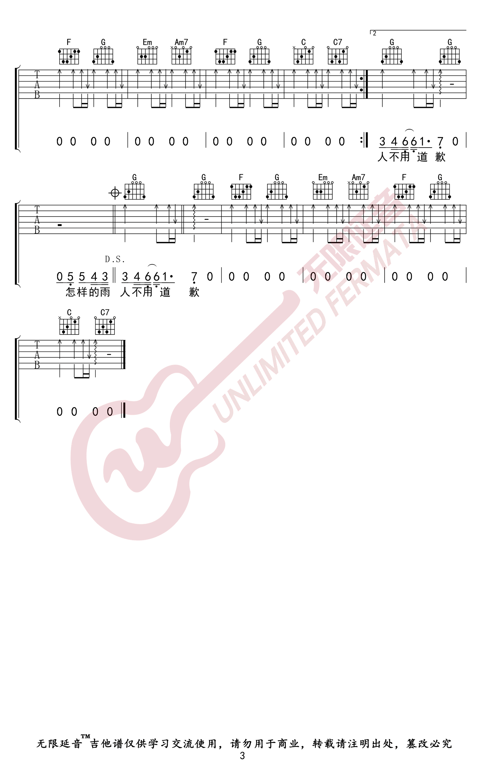 - 下雨天吉他谱_南拳妈妈_C调指法_高清图片谱
