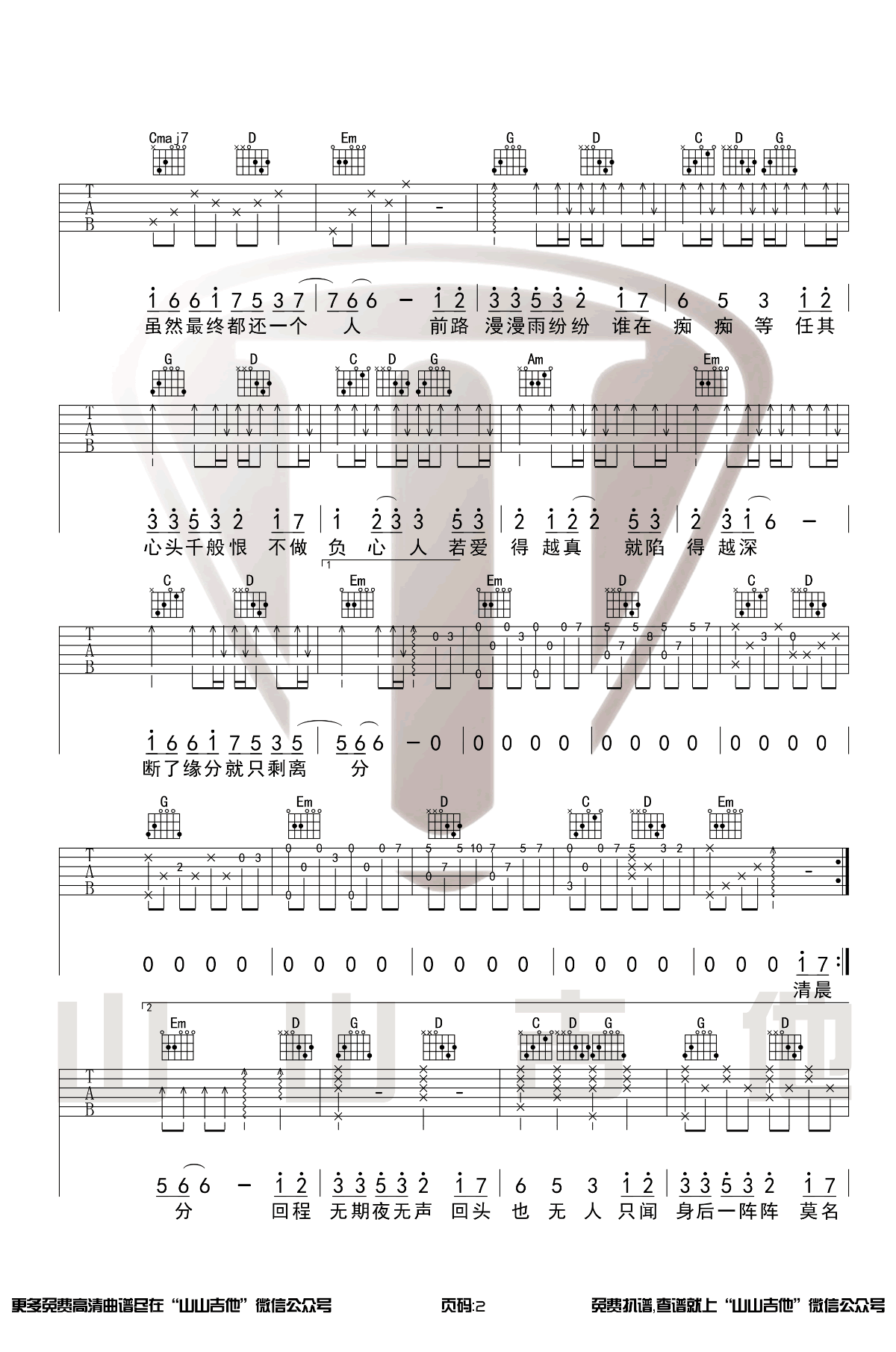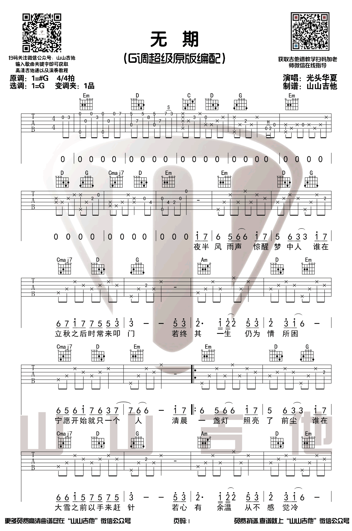 《无期》吉他谱,光头华夏词曲演唱,一首网络热门歌曲,无期六线谱,升G原调,选用G调超级原版编配,变调夹夹一品,山山吉他制谱出品,易唱网更新上传。