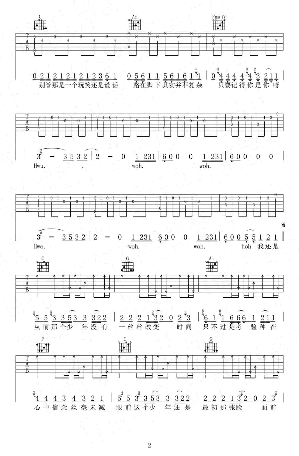 - 梦然《少年》吉他谱_C调_弹唱图片谱