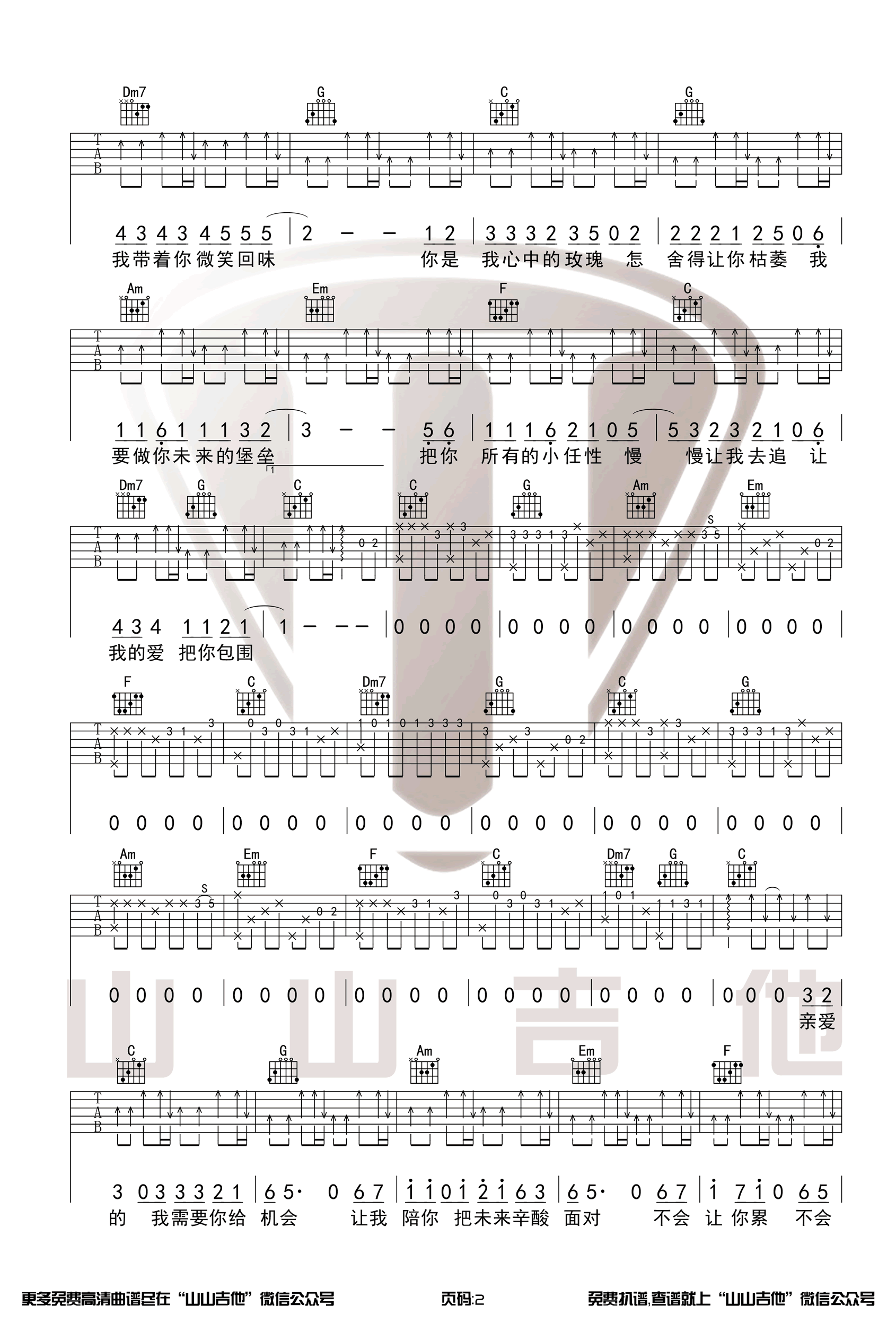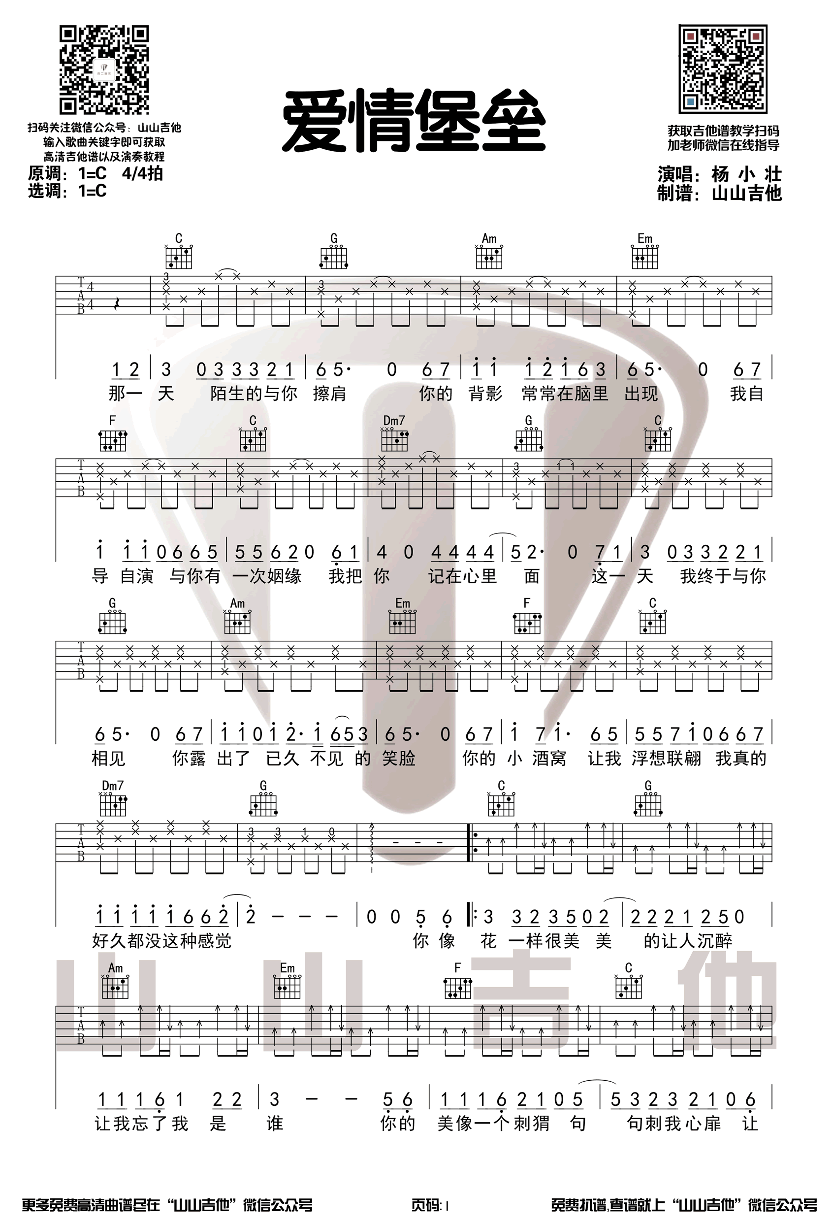 - 爱情堡垒吉他谱_杨小壮_C调带前奏_弹唱谱