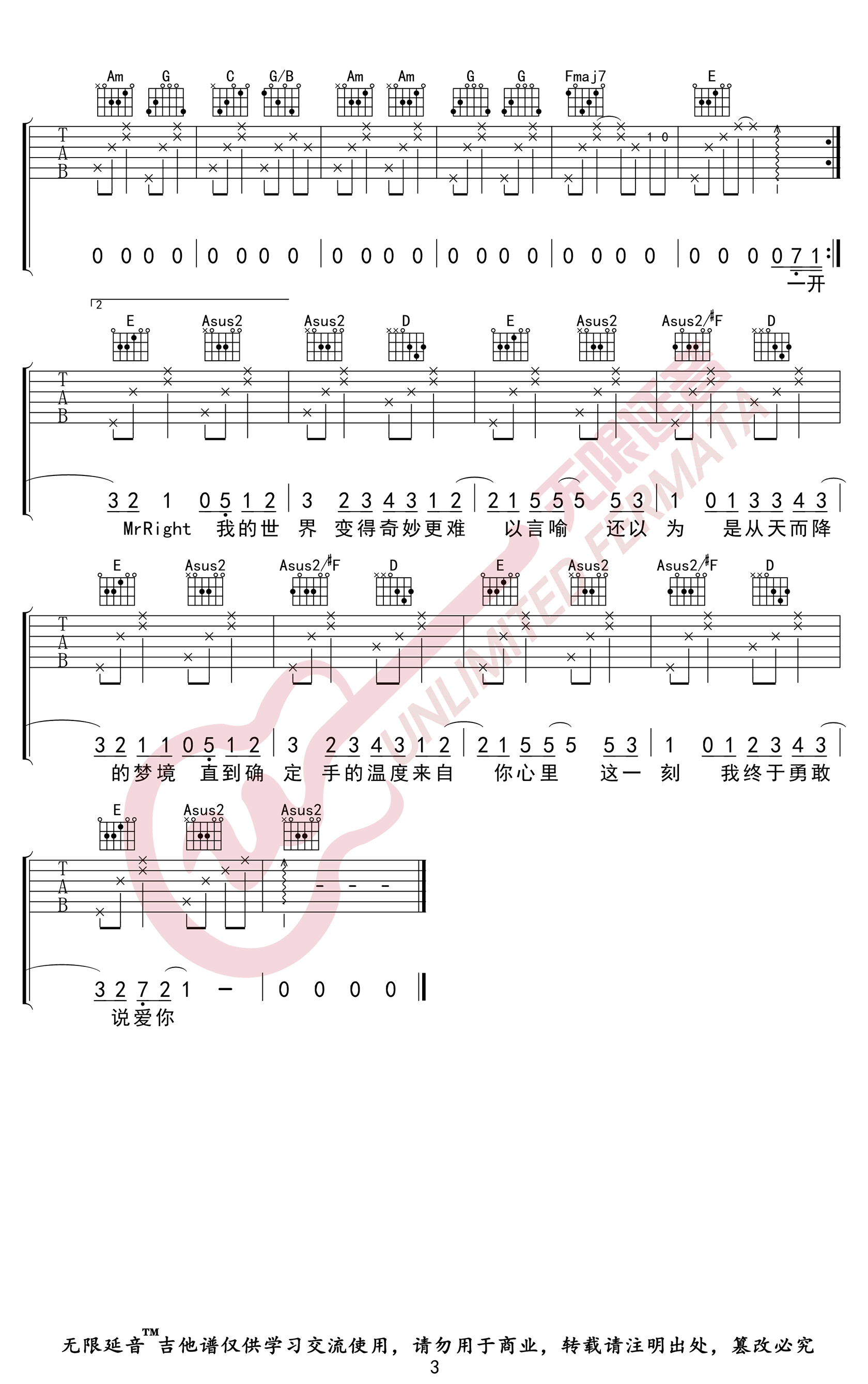 - 与我无关吉他谱_阿冗_C调版本_弹唱六线谱