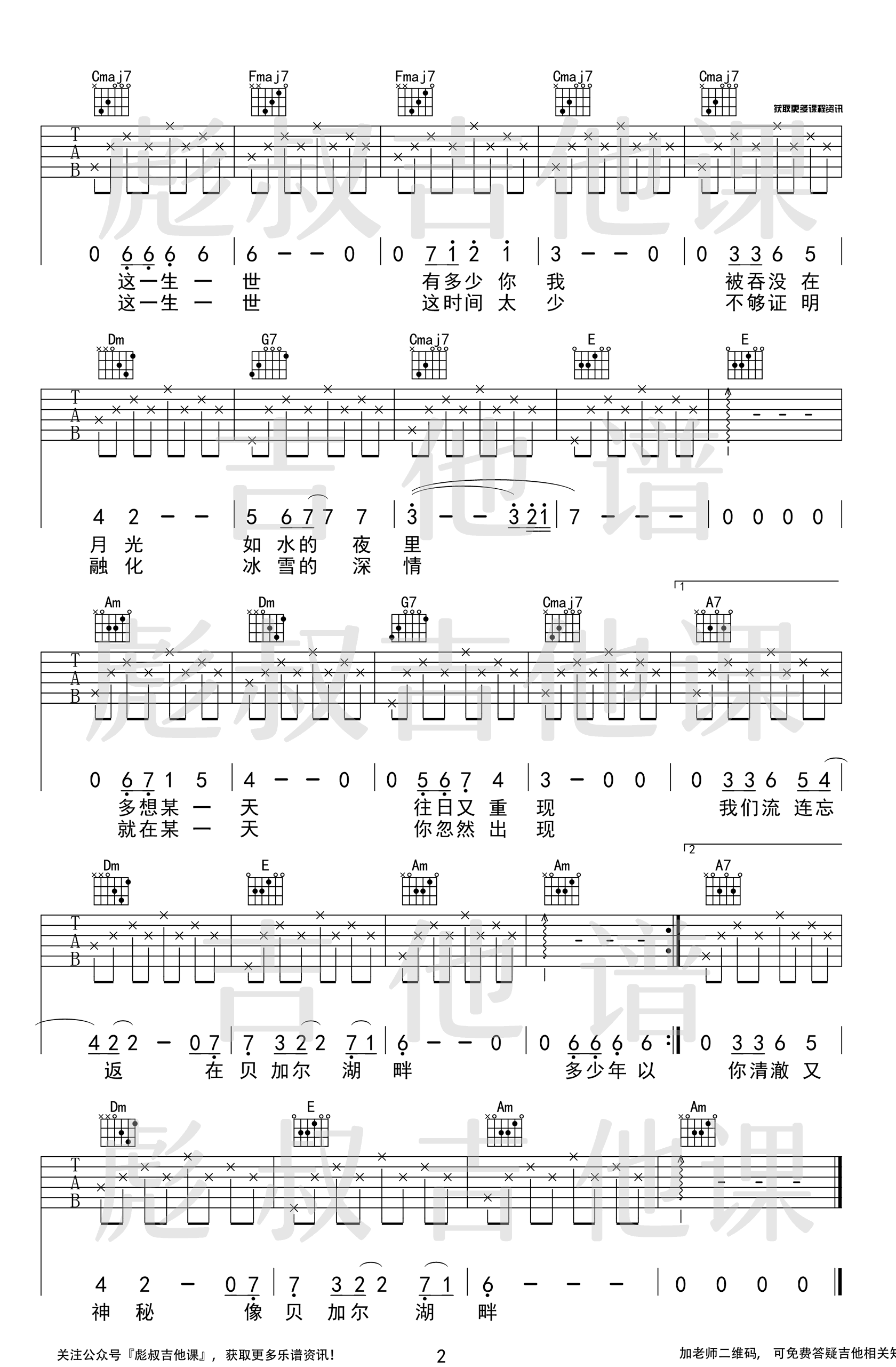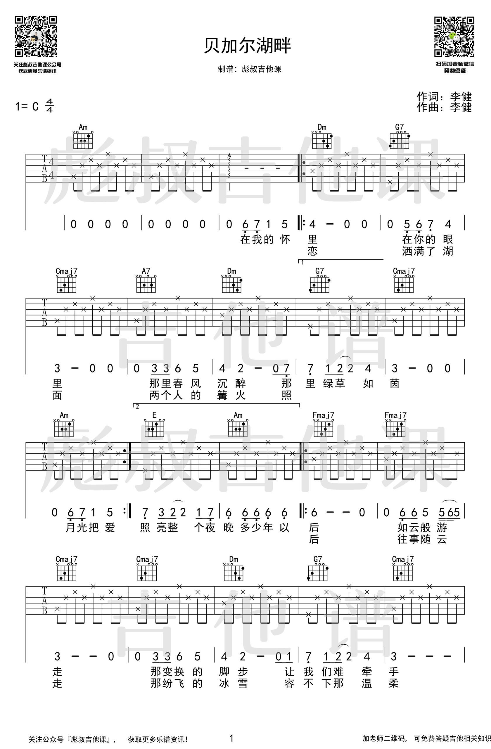 - 贝加尔湖畔吉他谱_李健_C调_弹唱六线谱