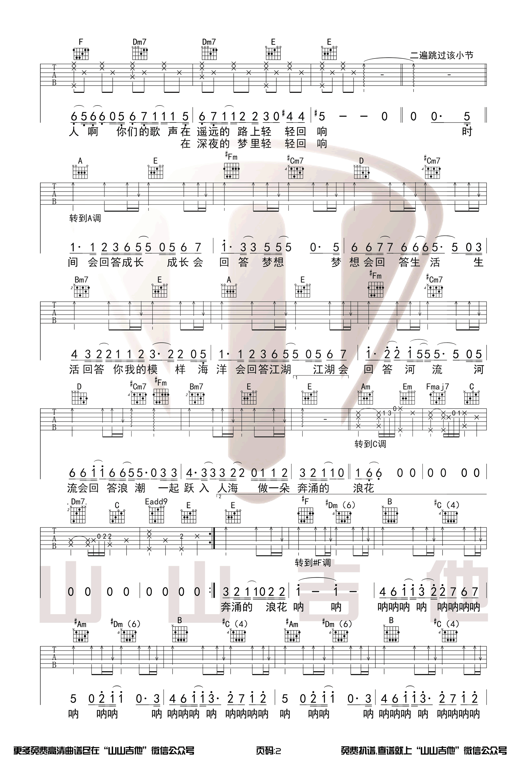 - 下雨天吉他谱_南拳妈妈_C调指法_高清图片谱