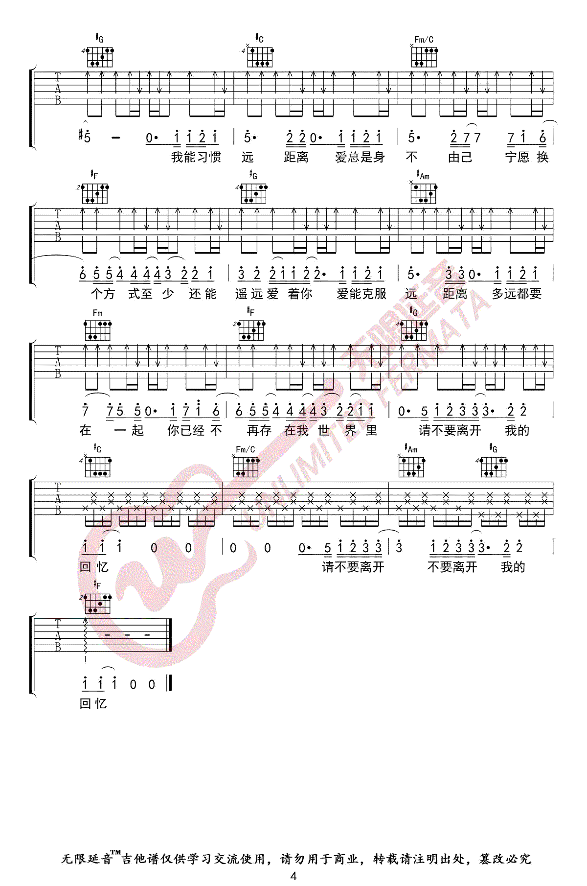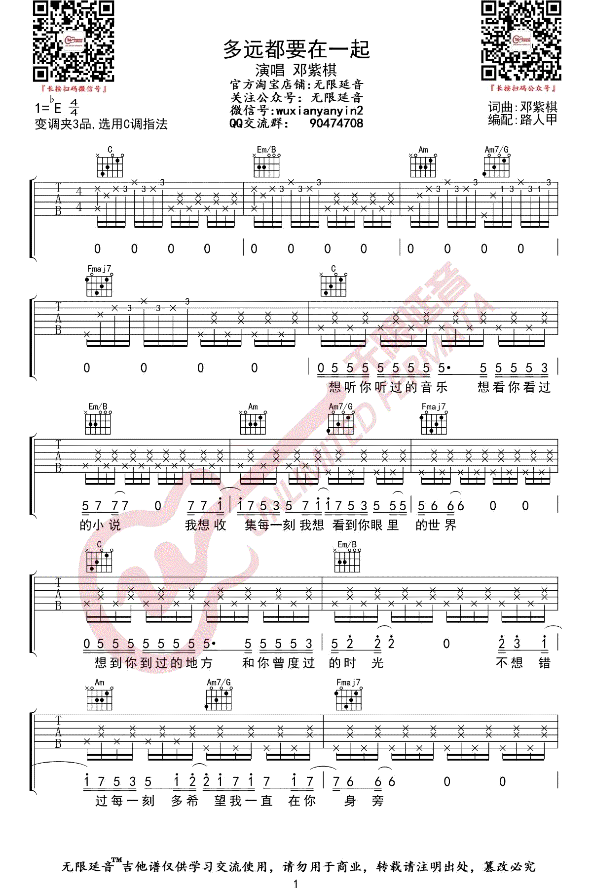 - 多远都要在一起吉他谱_邓紫棋_C调指法_弹唱六线谱