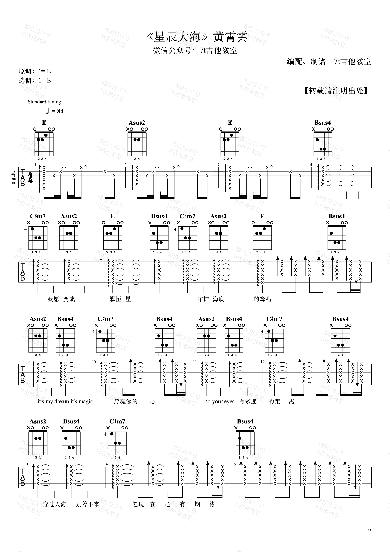- 星辰大海吉他谱_黄霄云_和弦分析_弹唱演示视频