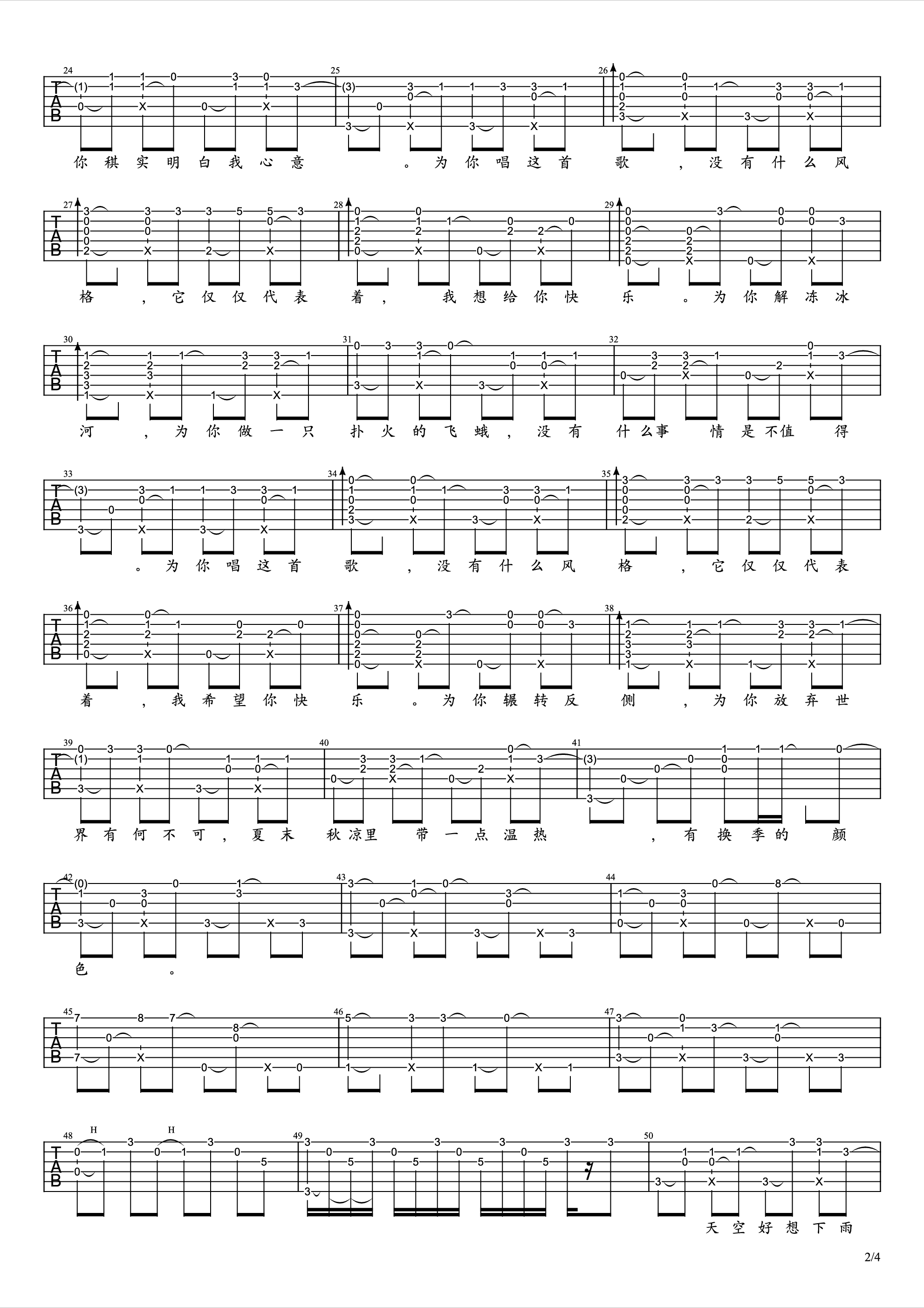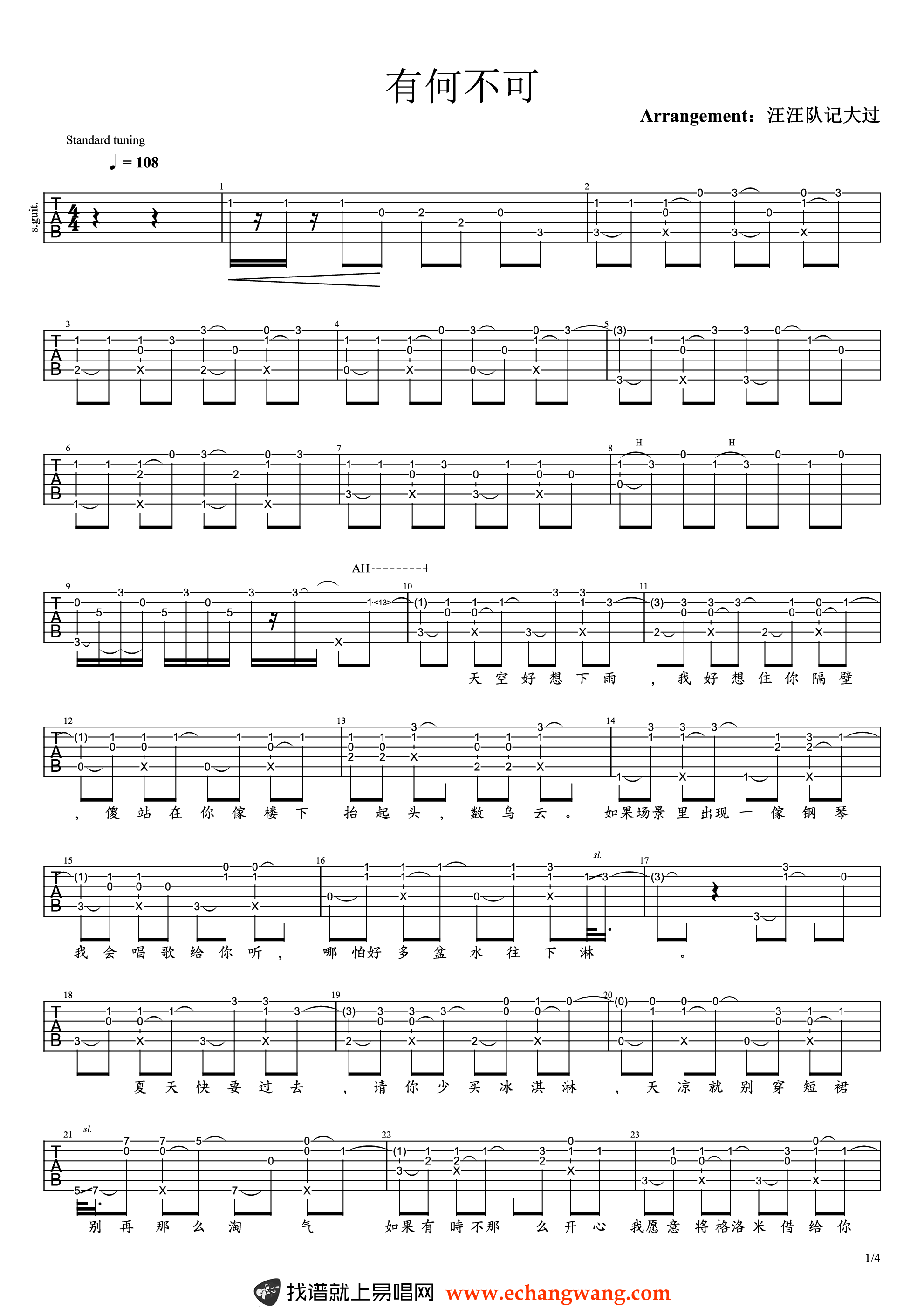 - 有何不可吉他谱_许嵩_加花弹唱谱_带前奏间奏版本