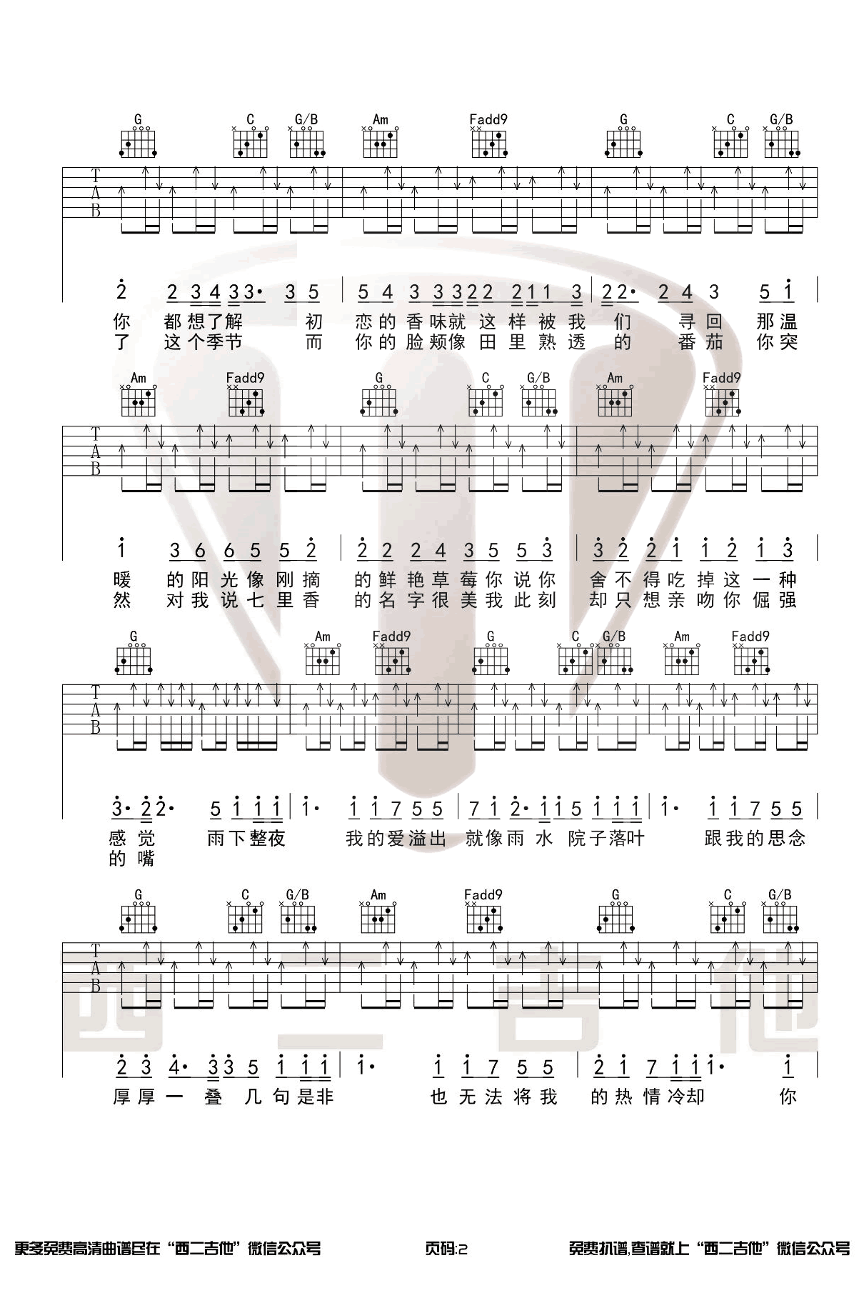 - 七里香吉他谱_周杰伦_C调原版_吉他弹唱演示视频