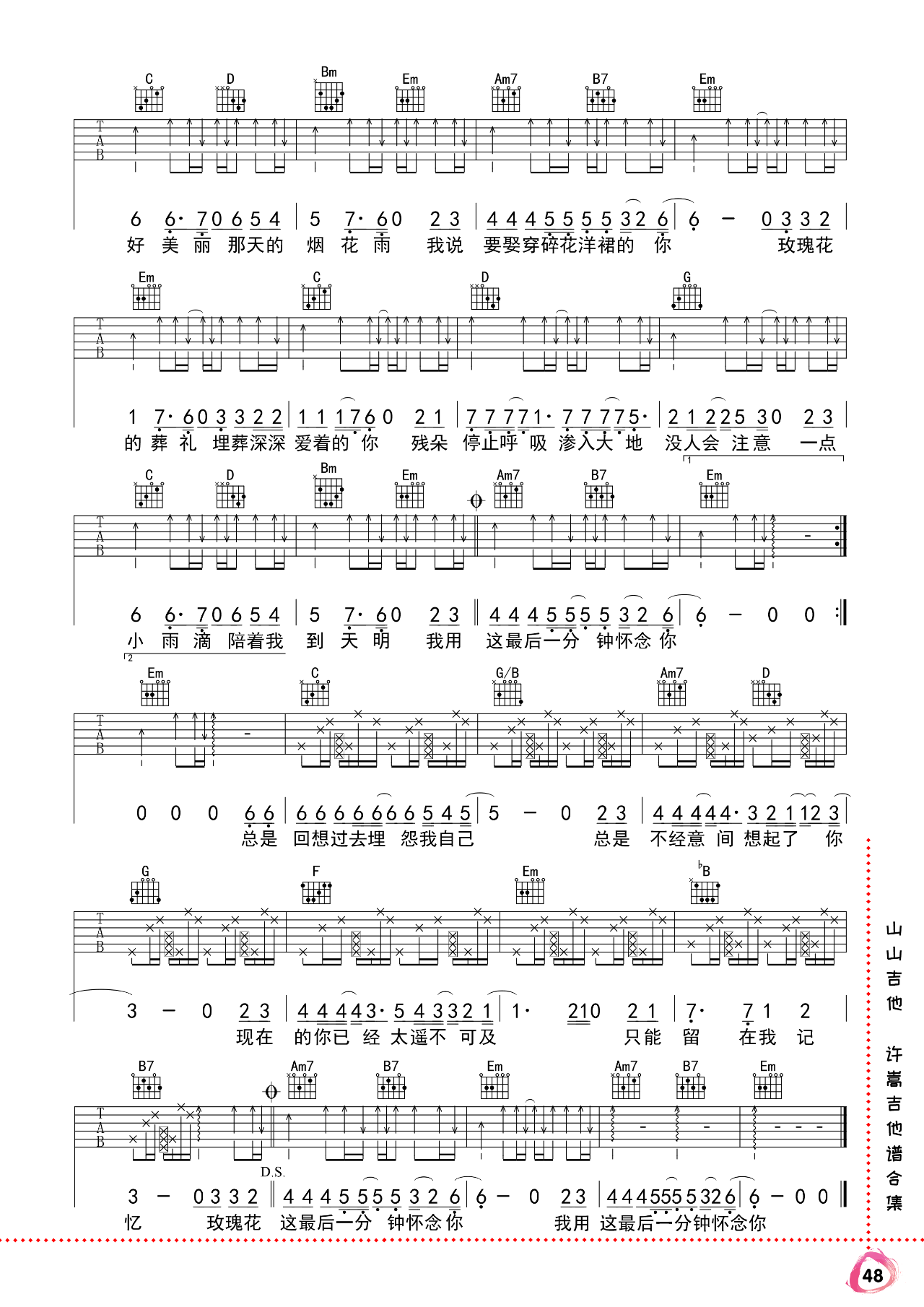 - 玫瑰花的葬礼吉他谱_许嵩_G调弹唱谱_扫弦+拍弦